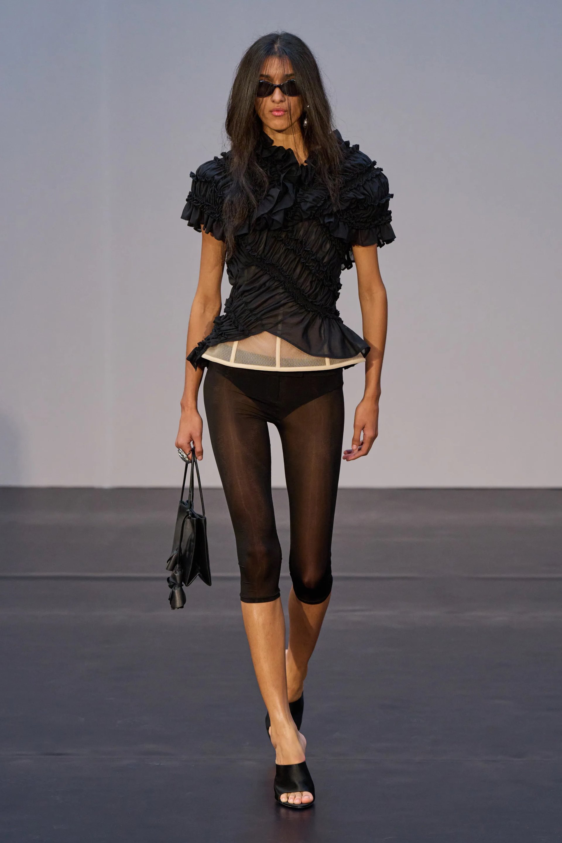 Những quý cô ưa chuộng thiết kế gợi cảm và lăng xê phong cách quyến rũ, đừng vội lo lắng trào lưu xuyên thấu biến mất, vì mùa Xuân Hè 2026, các ông lớn vẫn trình làng những thiết kế xuyên thấu với vải sheer đặc trưng. Song, đối trọng của vải sheer trên cán cân xuyên thấu dường như đã xuất hiện, không khó để bắt gặp những thiết kế mang cảm hứng cổ điển được chế tác từ vải nylon với form dáng đương đại trên đường băng.