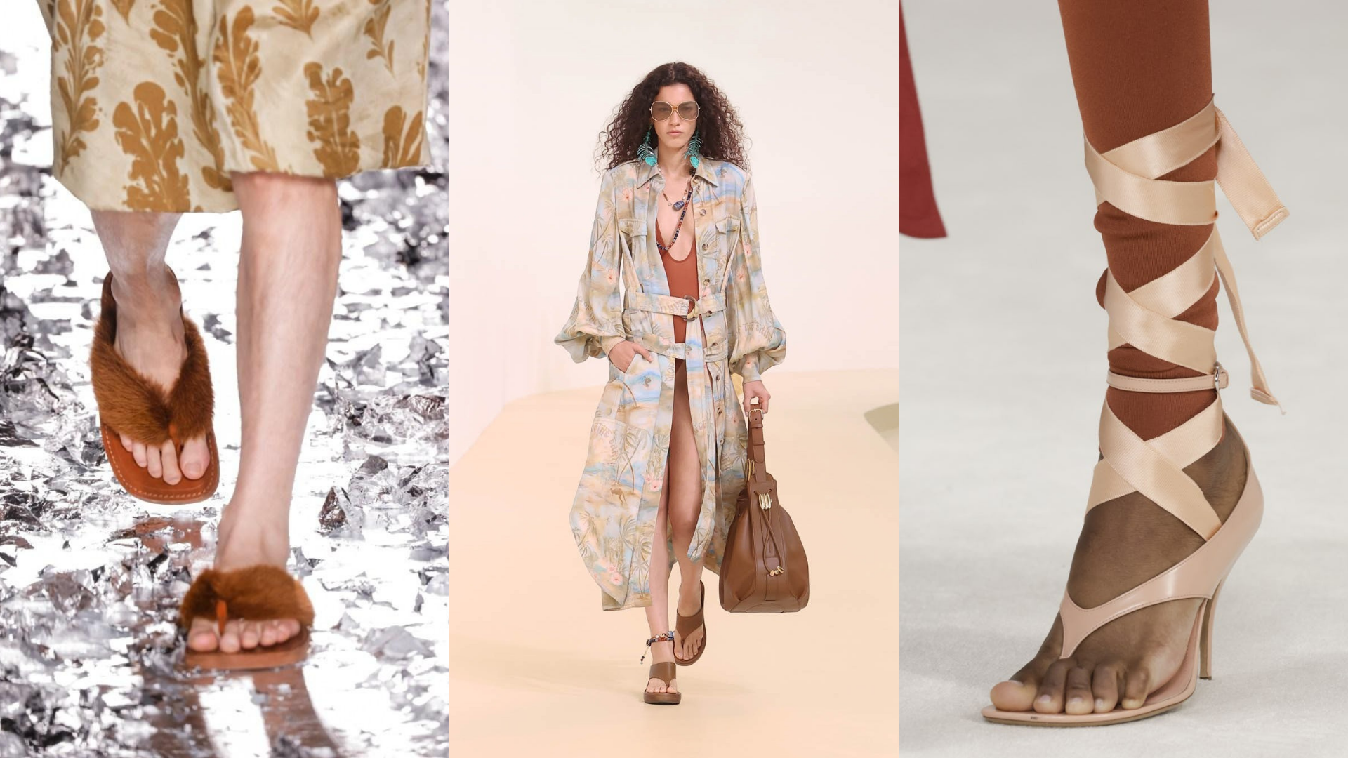 Ferragamo đã đưa chúng ta một minh chứng vô cùng thuyết phục trong bộ sưu tập Xuân/ Hè năm 2025, với những bản phối: áo len cardigan bó sát màu hồng bụi và những đôi ba lê cao gót được trang trí bằng những dải ruy băng satin dày buộc quanh mắt cá chân. Trong khi đó, Burberry, Toteme và Proenza Schouler đã sử dụng dây da mỏng hoặc dây thừng thay vì ruy băng, với kiểu dây đeo xoắn quanh chân. Những đôi sandal có dây này cũng vô cùng phù hợp với cách cài thêm những bông hoa làm điểm nhấn.