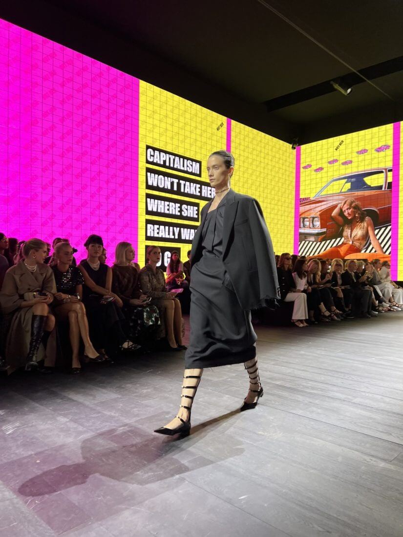 Có lẽ giữa thời trang và chủ nghĩa tư bản tồn tại mối quan hệ yêu-ghét, thương hiệu tạo ra những thiết kế phê phán chủ nghĩa tư bản nhưng cũng đạt được doanh thu từ chúng, cũng rơi vào vòng xoáy vận hành của chủ nghĩa tư bản.