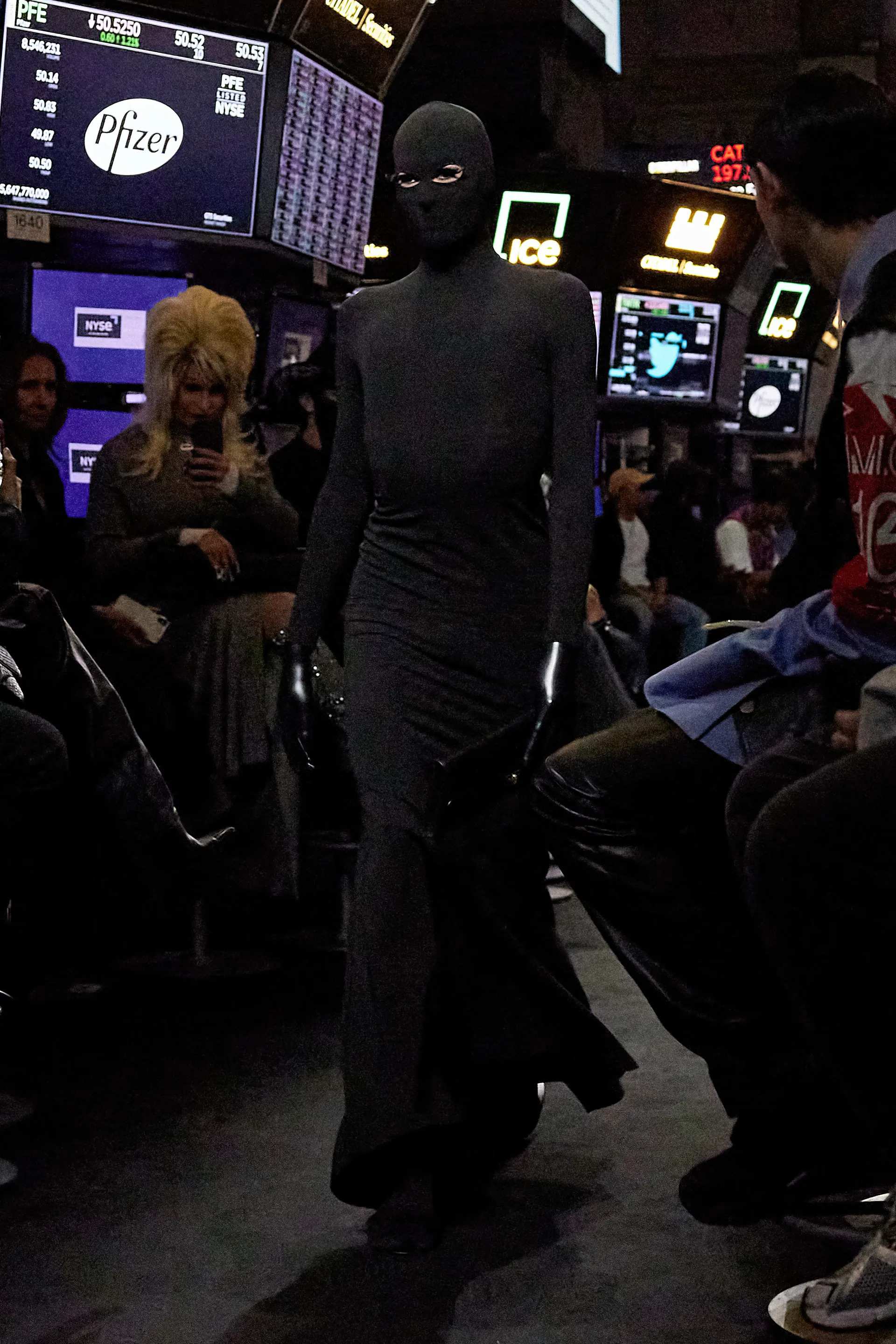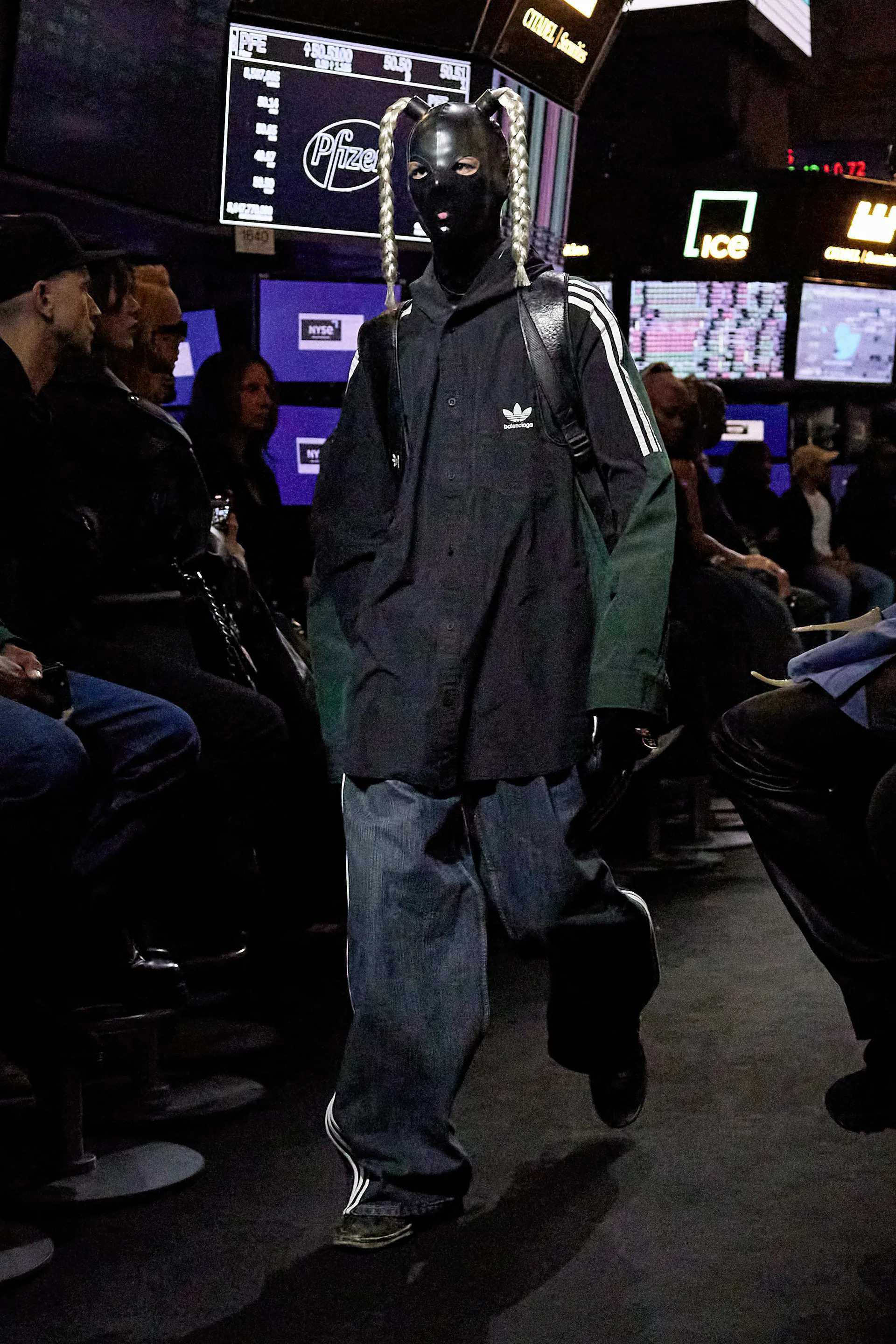 Demna chưa bao giờ trốn tránh bóng tối hay bất kỳ mối nguy, sự đe dọa nào và tất nhiên sàn diễn thời trang của anh cũng thế. “Chúng ta đang sống trong một thế giới đáng sợ, và tôi nghĩ thời trang là công cụ hiệu quả để phản ánh điều đó…” - Demna chia sẻ trong hậu trường show diễn. Trên sàn giao dịch của sở giao dịch chứng khoán New York hôm nay, Demna đã thể hiện sức mạnh thương mại của nhà mốt bằng loạt thiết kế sang trọng cùng sự hợp tác đáng mong chờ với Adidas, dưới những con mắt đánh giá của các “nhà giao dịch” Pharrell Williams, Ye, Chloe Sevigny, Megan Thee Stallion, Frank Ocean và Thị trưởng thành phố New York, Eric Adams.