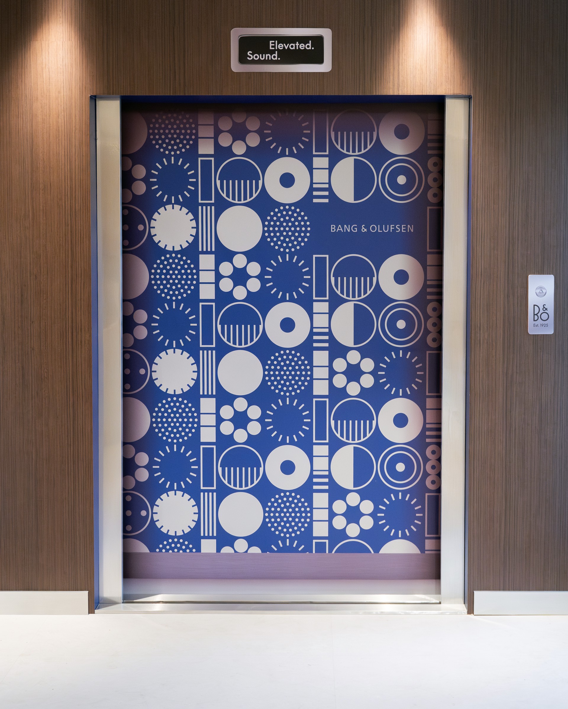 Sự tinh tế còn thể hiện qua những chiếc gối trang trí mang họa tiết kỷ niệm 100 năm hay giai điệu Jazz đón khách đầy ngẫu hứng từ chiếc Beosound A1 nhỏ bé nhưng uy lực đặt ngay trong thang máy - một trong những điểm check in của sự kiện - đánh thức mọi giác quan của các vị khách mời ngay từ điểm chạm đầu tiên.