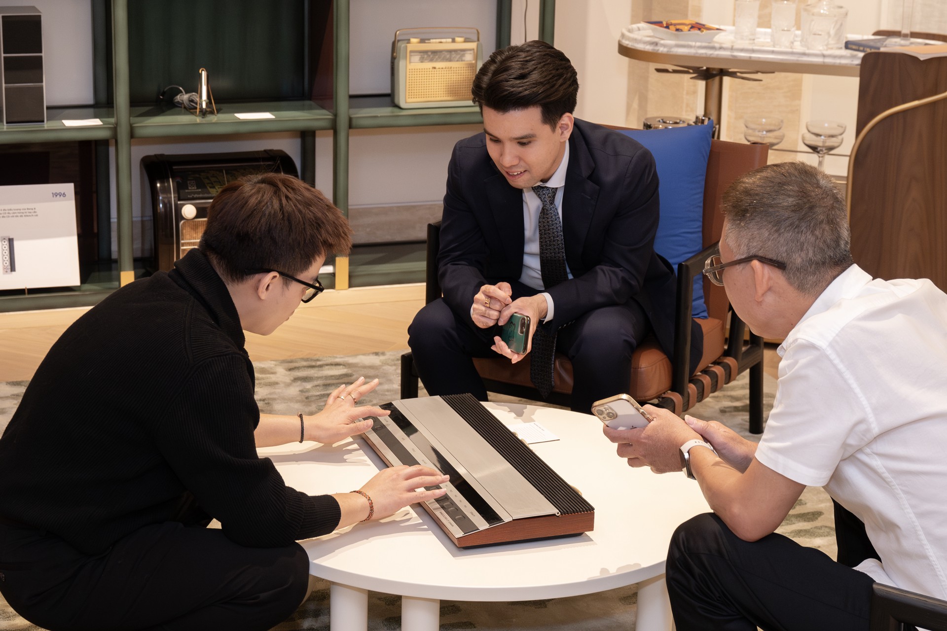 Tâm điểm của buổi lễ là màn ra mắt mãn nhãn của Bộ sưu tập "The Century Collection" (“BST thế kỷ”) và các thiết bị âm thanh đỉnh cao. Khách mời được tận mắt chiêm ngưỡng Beosound A9 – chiếc loa với thiết kế đĩa tròn kinh điển như một tác phẩm điêu khắc nội thất, và Beosound A5 với lớp vỏ đan tinh xảo, giao hòa giữa vẻ đẹp thủ công và công nghệ hiện đại. Đáng chú ý nhất là sự xuất hiện của mẫu tai nghe BeoGrace hoàn toàn mới cùng tai nghe Beoplay H100, thiết lập chuẩn mực mới về trải nghiệm âm thanh cá nhân. Bên cạnh đó, bàn trưng bày Atelier mang đến cái nhìn sâu sắc về dịch vụ "bespoke" độc quyền, cho phép khách hàng tùy biến màu sắc và chất liệu để biến mỗi thiết bị thành một bản thể duy nhất, đậm dấu ấn cá nhân.