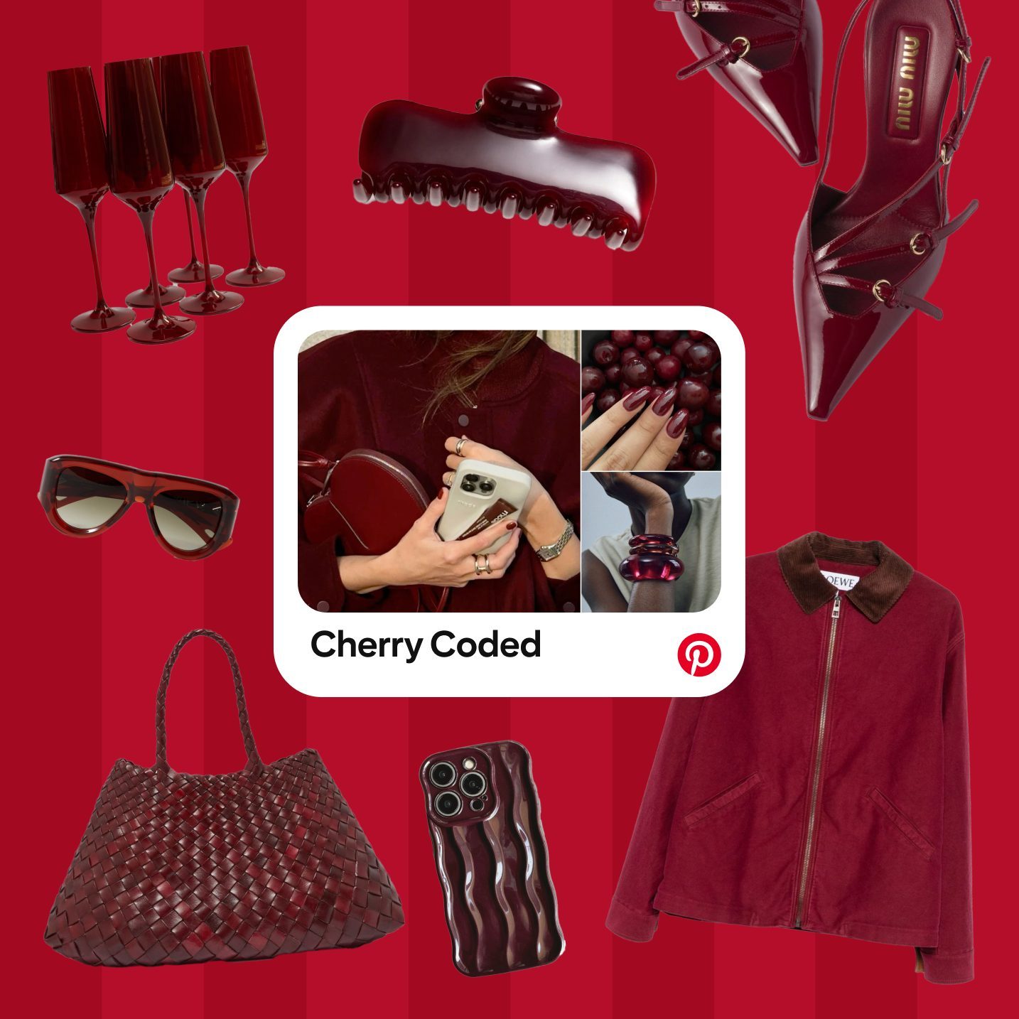 Sắc “cherry coded” được Pinterest xếp vào danh sách màu sắc xu hướng 2025, cộng thêm lượt tìm kiếm “dark cherry red” tăng vọt, đây là gam màu trầm Thu Đông được ưa chuộng nhất mùa Hè này.