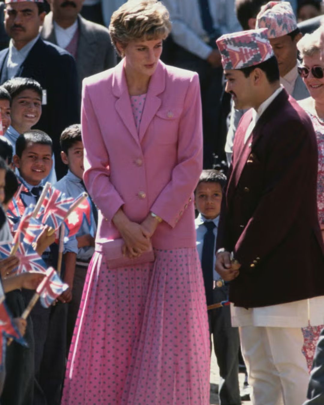 Màu sắc của từng món phụ kiện được Diana chọn lựa kỹ lưỡng, không chỉ để tạo sự cân bằng mà còn để nâng tầm tổng thể trang phục. Những hình ảnh của Diana trong các bộ blazer sắc màu rực rỡ, dù là xanh dương, đỏ, hồng hay xanh lục, đều toát lên sự tự tin và phong thái của một biểu tượng thời trang vĩ đại.