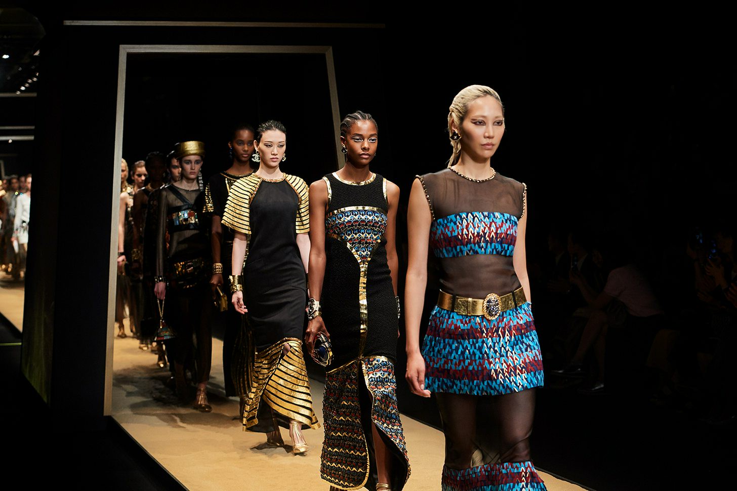 Karl Lagerfeld đã chọn Đền Dendur bên trong bảo tàng The Met làm “tấm nền hoành tráng” cho màn trình diễn thời trang của ông. Ngôi đền Ai Cập cổ đại có niên đại hơn 2000 năm tuổi này là bối cảnh hoàn hảo cho chủ đề của bộ sưu tập. Sự kết hợp giữa di sản văn hóa cổ xưa và thời trang cao cấp đã tạo ra hiệu ứng thị giác choáng ngợp cho bất kì ai có cơ hội chiêm ngưỡng trực tiếp tại bảo tàng năm ấy.