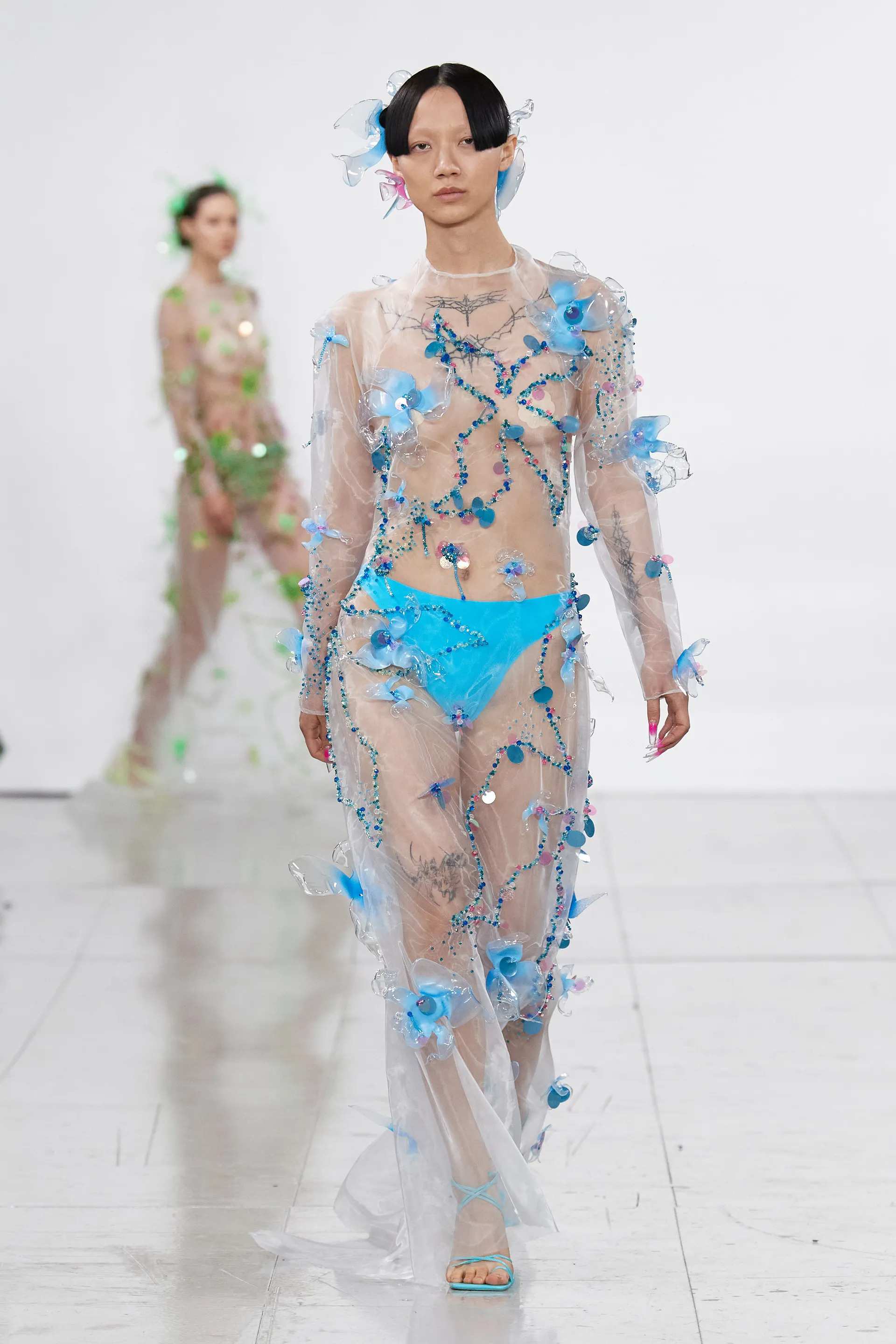 Là một trong những nhà thiết kế gốc Á nổi bật tại thời trang xứ Anh hay cái tên quen thuộc trong tủ quần áo của nhiều ngôi sao nổi tiếng những năm gần đây, Chet Lo đem đến đường băng London Fashion Week Spring 2023 một lăng kính thời trang mới mẻ, vẫn là dấu ấn popcorn nhưng ẩn sau đó là nguồn cảm hứng từ văn hóa Á Đông.