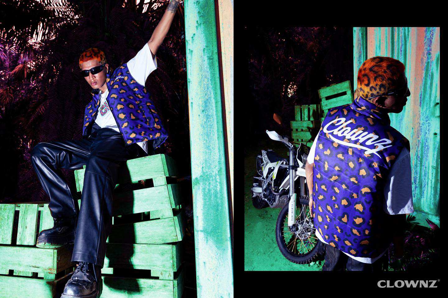 Một trong những item nổi bật nhất trong bộ sưu tập lần này chính là chiếc áo puffer vest được phối hoạ tiết da báo với cách chơi màu độc đáo, mang đậm cảm hứng nhiệt đới, cùng chất liệu vải gió in chuyển nhiệt, được chần 1 lớp bông tạo độ phồng, đặc biệt có thể mặc được cả 2 mặt. Ngoài hoạ tiết da báo, da là một trong những chất liệu bổ sung đáng chú ý được ClownZ sử dụng trên đa dạng items như áo sơmi, quần short và quần dài - mang hơi thở của hoang dã, tính "trippy" đặc biệt.