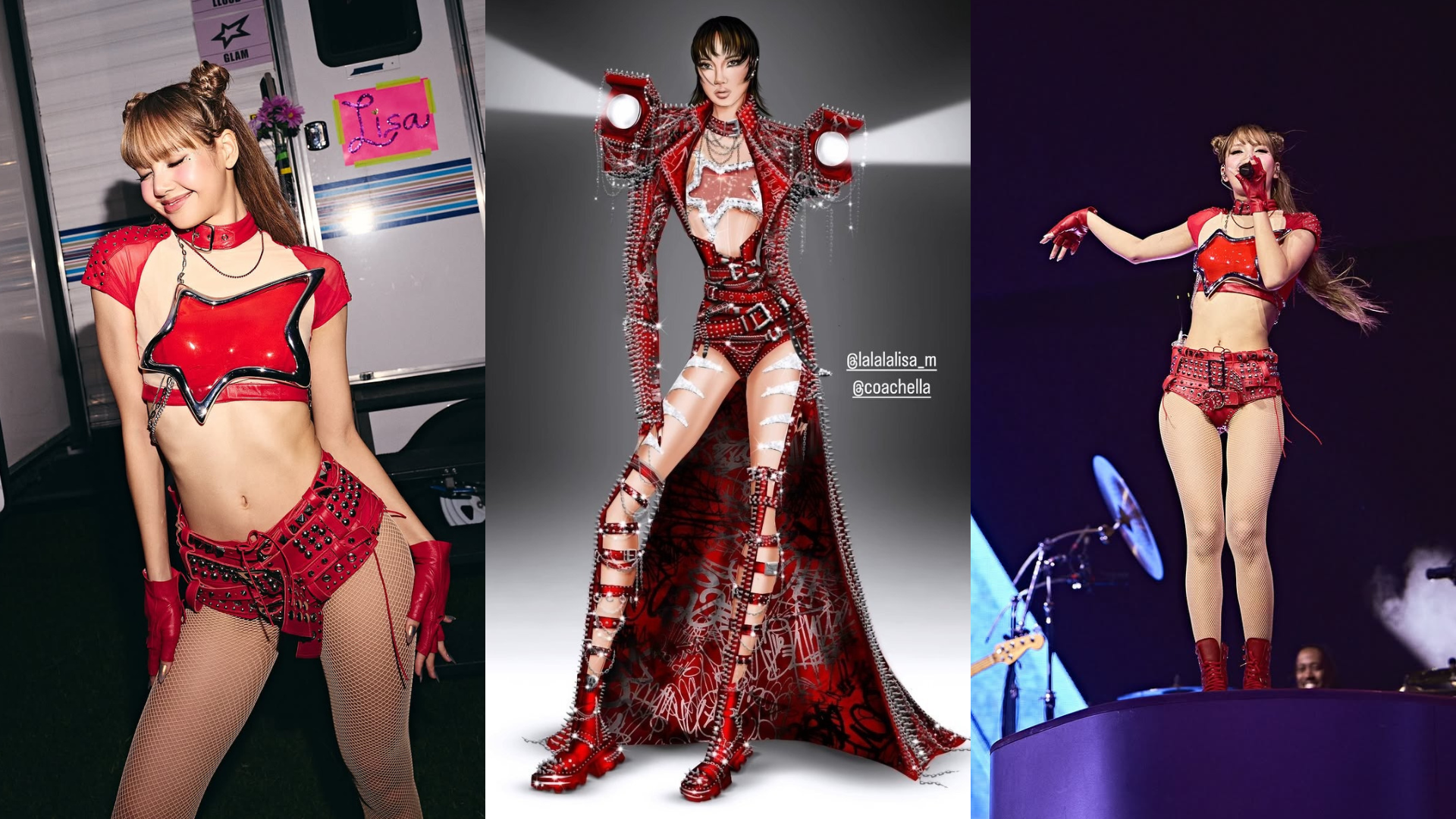 Quấn mình trong chiếc áo phao đen khổng lồ bất chấp cái nắng gay gắt của California, Lisa xuất hiện thần thái trên chiếc bục nâng sân khấu. Chỉ trong vài phút, chiếc áo khoác khổng lồ cùng nhiều sợi dây xích quấn quanh được cởi ra, để lộ bodysuit ôm sát cùng lớp vảy nổi lấy cảm hứng từ loài bò sát. Thiết kế được đặt tên là “Reptile Villain”, đan xen với lớp vảy, những chiếc răng nanh được trang trí dọc cầu vai, và kéo dài xuống tận cánh tay của nữ ngôi sao.