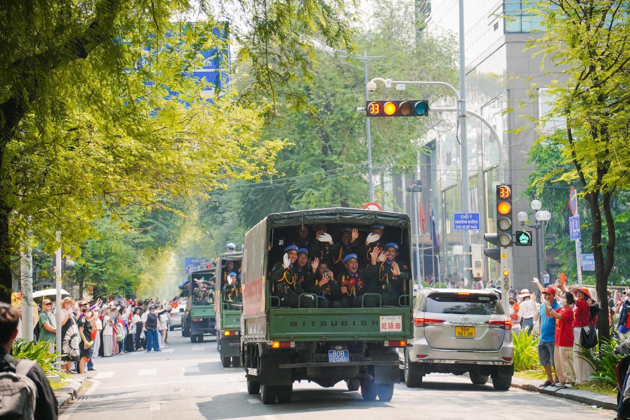 Sau khi kết thúc diễu binh, diễu hành, các chiến sĩ chia tay, chào tạm biệt người dân về điểm tập kết. Hình ảnh các đoàn xe chở chiến sĩ - đang vẫy tay, tươi cười, rơm rớm nức mắt khi phải rời xa Thành phố Hồ Chí Minh, dưới tán cây xanh ngắt của tháng tư rực rỡ, khắc sâu trong tâm trí trong nhiều thế hệ người Việt.