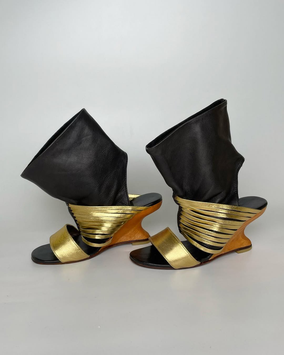 Nếu bạn muốn một đôi giày đủ sức làm “tuyên ngôn” cho cả bộ đồ, hãy thử bắt đầu từ Ciggy.co. Đây là điểm đến của những đôi hàng hiệu vintage hiếm hoi, từ Dior, Louboutin, tới Vivienne Westwood…, được chọn lọc kỹ lưỡng về cả nguồn gốc lẫn tình trạng hàng. Những đôi giày ở đây chắc chắn sẽ thu hút ánh nhìn của bạn ngay từ những giây đầu: Từ đôi mules “lai” boots mạ ánh vàng tới đôi cao gót hơn 12cm cách điệu cùng thiết kế như dải ruy băng quấn chặt lấy chân bạn…
