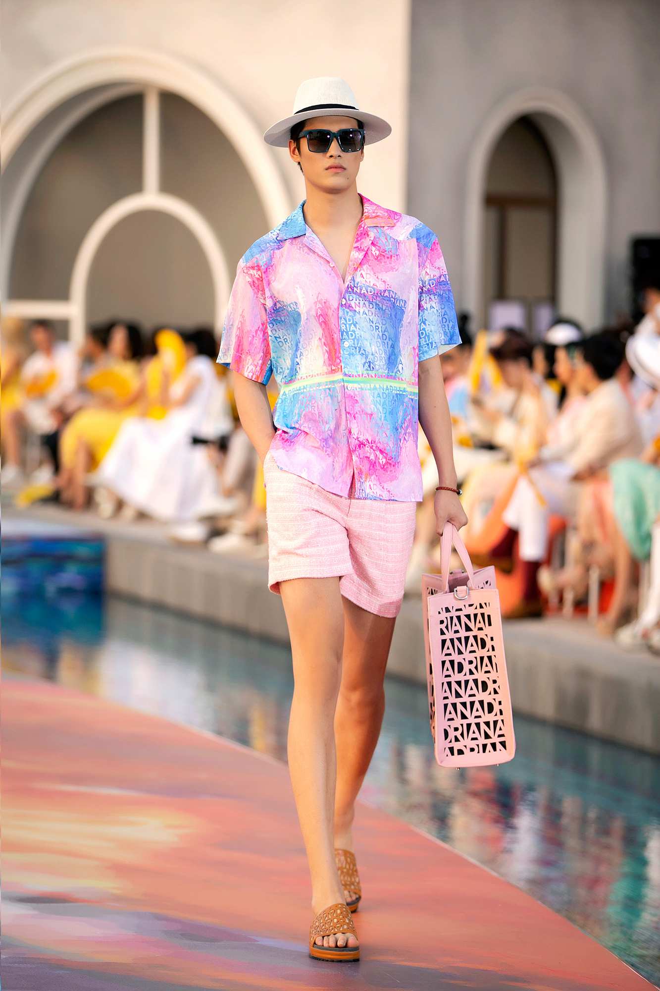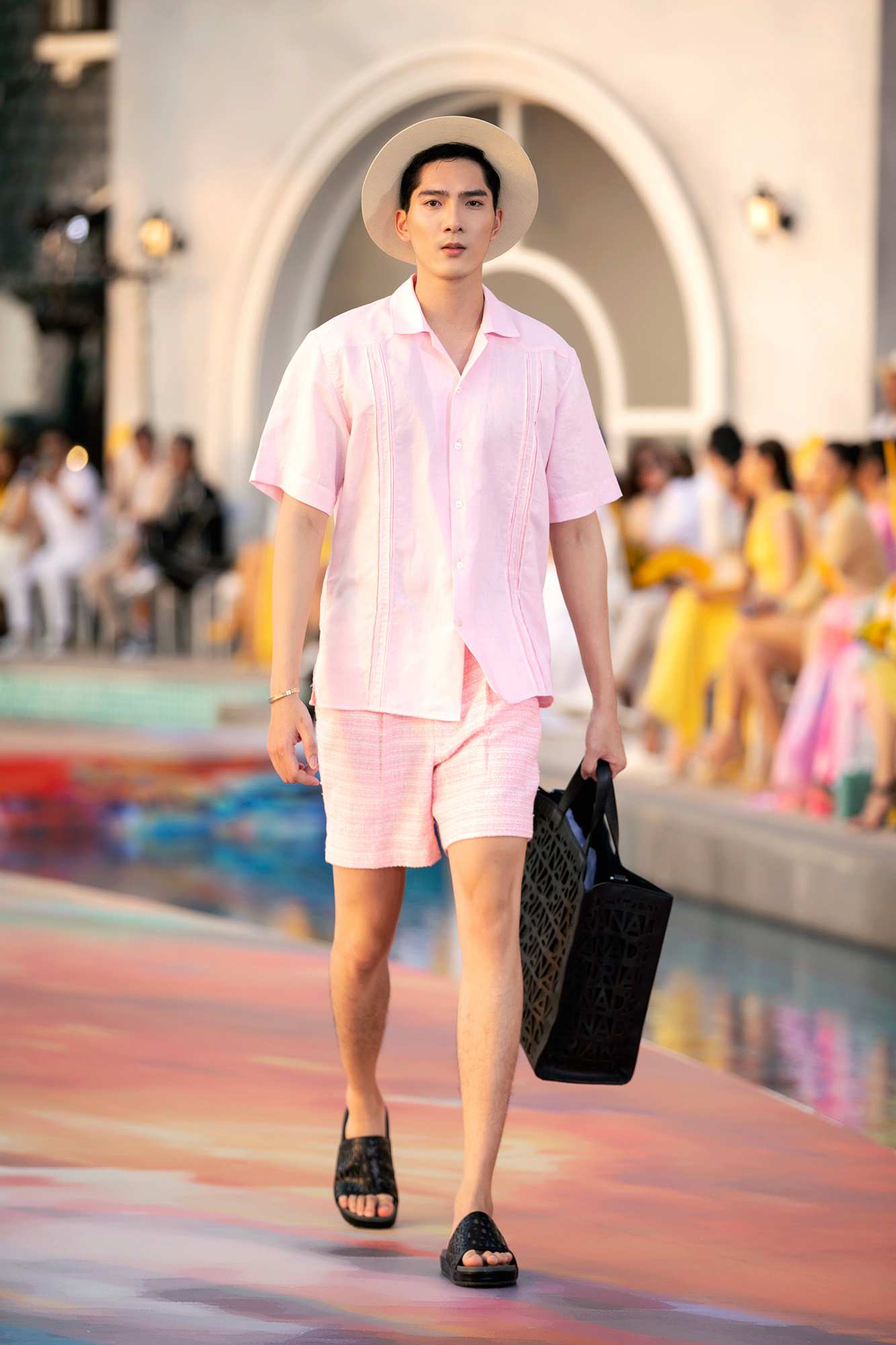 Các thiết kế dành cho những chàng trai đa phần đều là chemise, áo danton cùng phom dáng rộng rãi, thoải mái. Cùng với đó, NTK Adrian Anh Tuấn còn mang đến những kiểu quần short với bảng màu thú vị, trắng, xanh pastel hay hồng...