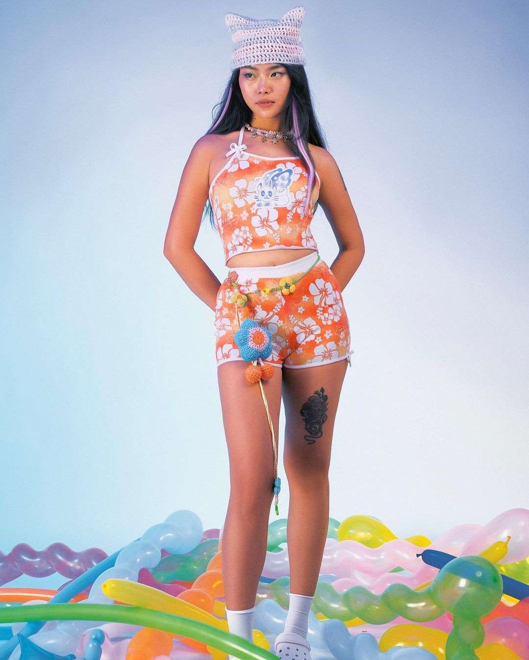 Chân dung của các cô nàng từ AKA.MYDINH luôn đặc trưng bởi những gam màu sặc sỡ, tươi sáng, trẻ trung và đầy tinh nghịch. Đó là những cô gái sở hữu một tư duy hiện đại nhưng cũng là những tâm hồn lưu luyến với những ký ức đầy hoài niệm. Những điều đó đã được thể hiện trực tiếp ngay trên những thiết kế đặc sắc. Nhắc đến AKA.MYDINH hội tín đồ ắt hẳn sẽ nhớ đến những món phụ kiện màu sắc, những thiết kế mang âm hưởng của thời trang những năm 2000s, cũng như những bản in vui nhộn. Ở bộ sưu tập mới lần này, AKA.MYDINH cùng artist kiêm knitter @huouanh sẽ đưa người mặc trở về những năm tháng tuổi thơ hồn nhiên, vui nhộn bằng những bộ suit ngắn, những chiếc quần quen thuộc trong các bộ trạc suit ngày xưa, những chiếc baby tee thịnh hành, những món phụ kiện bằng len móc có 1-0-2 cùng đó là bảng màu rực rỡ kết hợp với bản in hoa nhiệt đới.