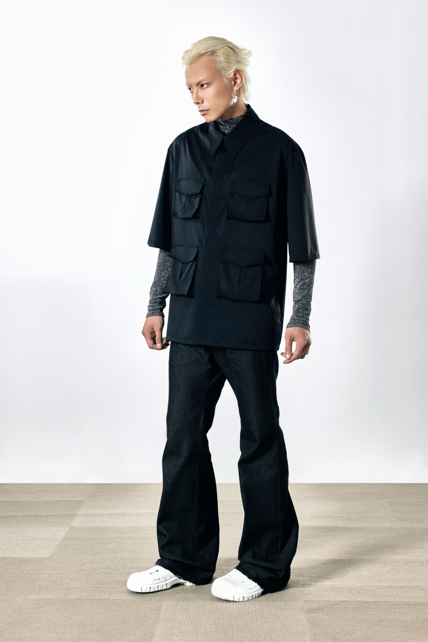 FORTYTHREE Thu Đông 2022 được chia thành hai phần gồm những vẻ ngoài thường nhật và những bộ đồng phục dành riêng cho mùa đông. Ở lần ra mắt đầu tiên, xuyên suốt 11 diện mạo hoàn chỉnh, hội tín đồ sẽ thấy được sự bụi bặm nhưng vẫn hiện đại và sang trọng, thể hiện rõ qua những đường viền thô, phom rộng thùng thình, họa tiết kẻ sọc và các chi tiết “cố tình” chưa được hoàn thiện…