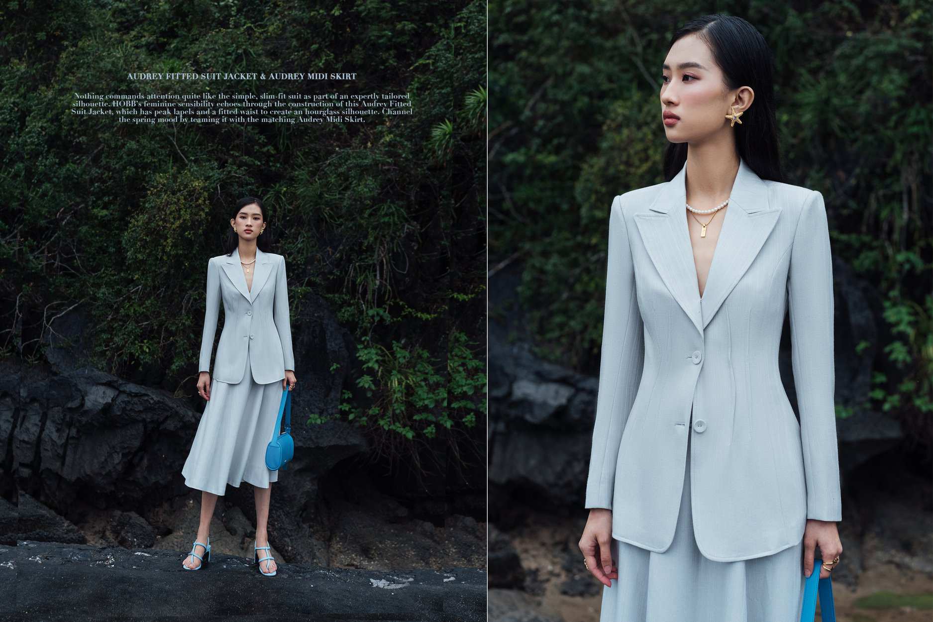 Bảng màu lần này cũng được thương hiệu thổi vào sắc xuân cùng sắc Pastel Orange, Light Grey, Rose & White được phối hợp hài hoà, tạo nên hiệu ứng thị giác nhẹ nhàng nhưng không kém phần tươi sáng, bắt mắt. Theo như HOBB Design chia sẻ “Đến với Edenic Charm, tinh thần thanh lịch của thương hiệu hoà quyện với sự mềm mại đầy nữ tính đem đến nét chấm phá mới mẻ cho BST: với những đường cắt uốn lượn cầu kỳ, kỹ thuật tạo khối tinh xảo, cách phối màu đơn sắc cùng form dáng relaxed blazer khác biệt”. Bằng cách tạo ra một khu vườn thiên nhiên êm đềm, mát mẻ HOBB đã tôn vinh vẻ đẹp yêu kiều của người phụ nữ.