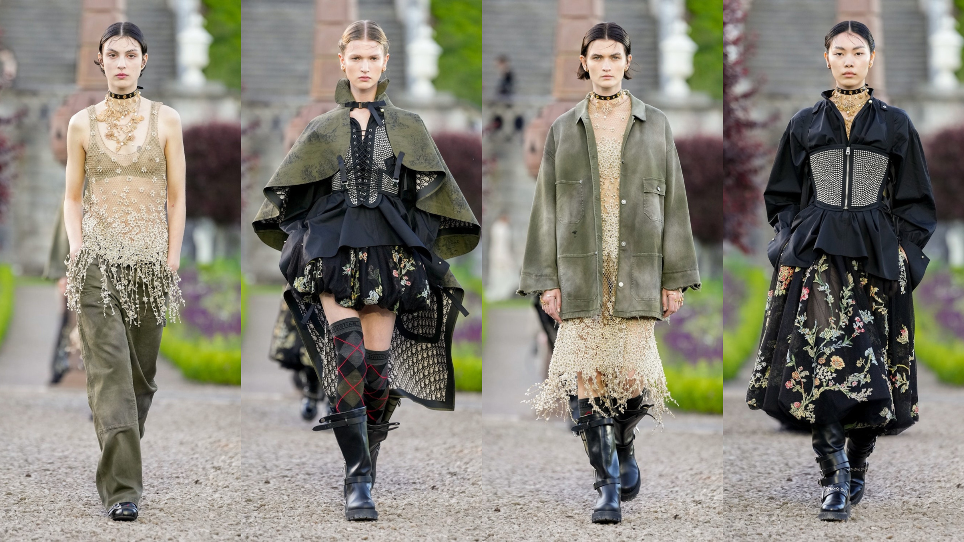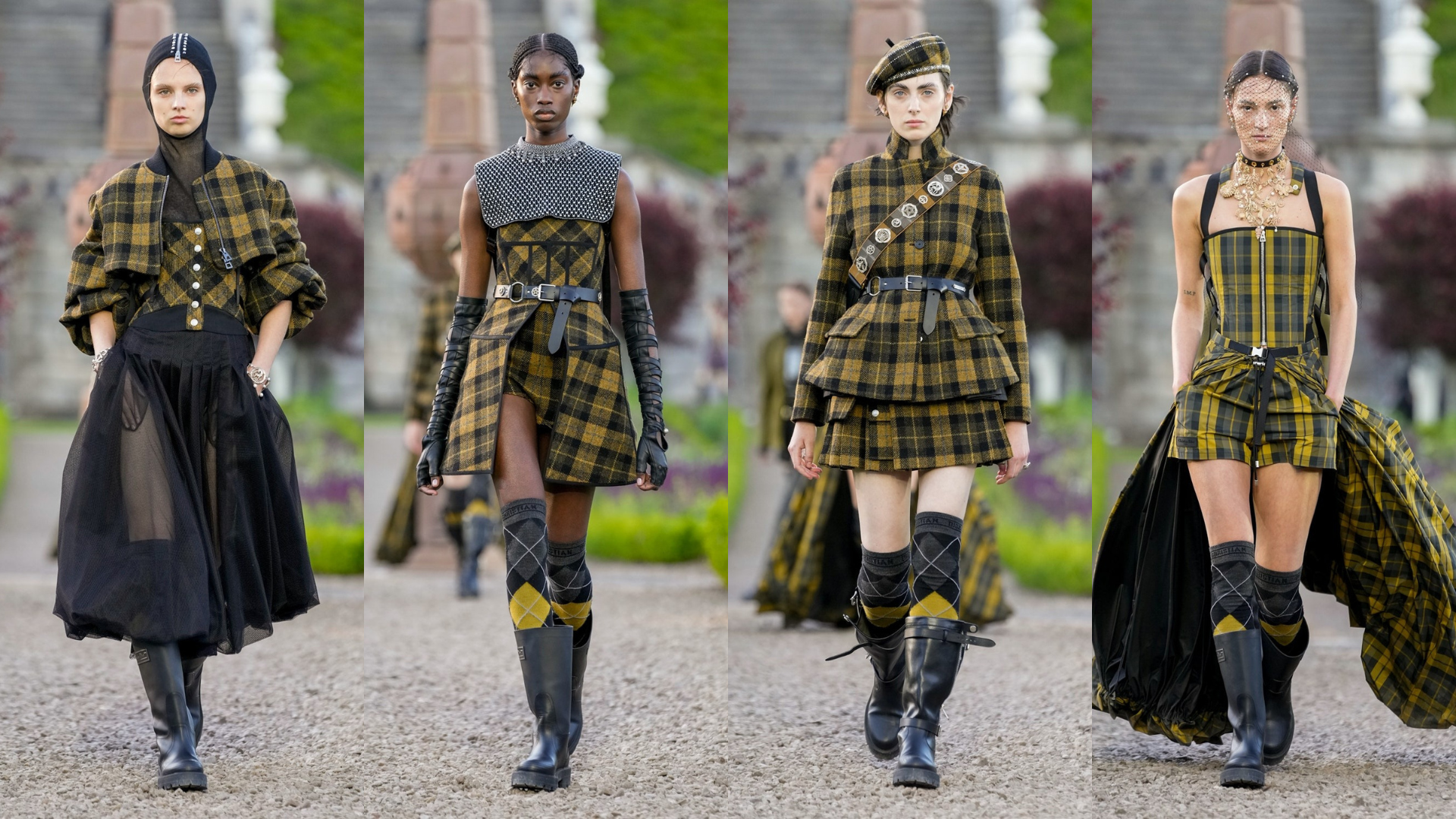 Dior Cruise 2025 hay “vẻ đẹp của những cuộc hành trình và văn hóa giữa Dior và Scotland” theo lời miêu tả của Maria, được bắt đầu và “nhấn chìm” trong tiếng kèn túi Skirl đăm chiêu. Những giai điệu quen thuộc trong tâm trí của mỗi người Scotland làm nền cho sự vương giả, nhưng phảng phất vẻ đẹp Goth ma mị mà Maria phác họa trong bộ sưu tập Dior Cruise 2025, lồng ghép cùng với nhịp đập của lịch sử, vẻ đẹp lãng mạn, và một chút kịch tích từ đất nước được công nhận là đẹp nhất thế giới.