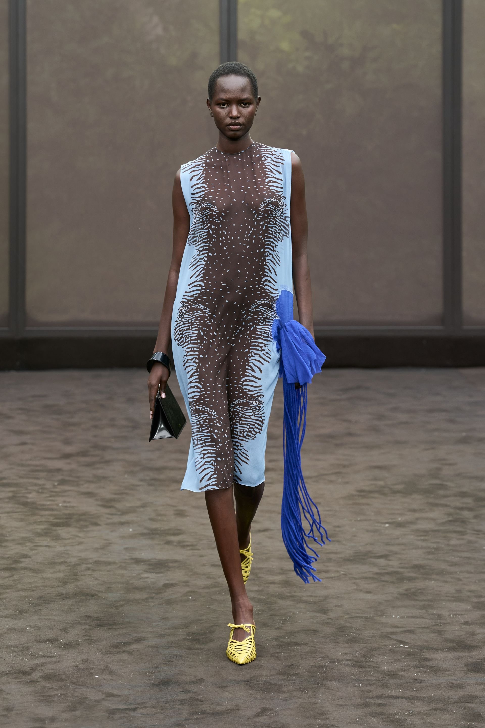 Hình ảnh đó mở ra hành trình khám phá các họa tiết và chất liệu gắn liền với phong trào “Africana” trong kỷ nguyên Jazz. Bộ sưu tập thể hiện qua họa tiết da thú trên nền vải satin devoré, cùng váy voan nhẹ bẫng và áo blouse xuyên thấu in da báo, ngựa vằn. Suit kẻ sọc mang tinh thần tiệc tùng, còn trang sức được chế tác từ da plongé. Len mỏng tạo cảm giác tinh gọn, lụa crepon in hoa văn theo bố cục lấy cảm hứng từ tài liệu lưu trữ. Những chi tiết này nhấn mạnh cách Ferragamo khai thác hình ảnh quá khứ để định hình bảng màu và chất liệu mùa này.