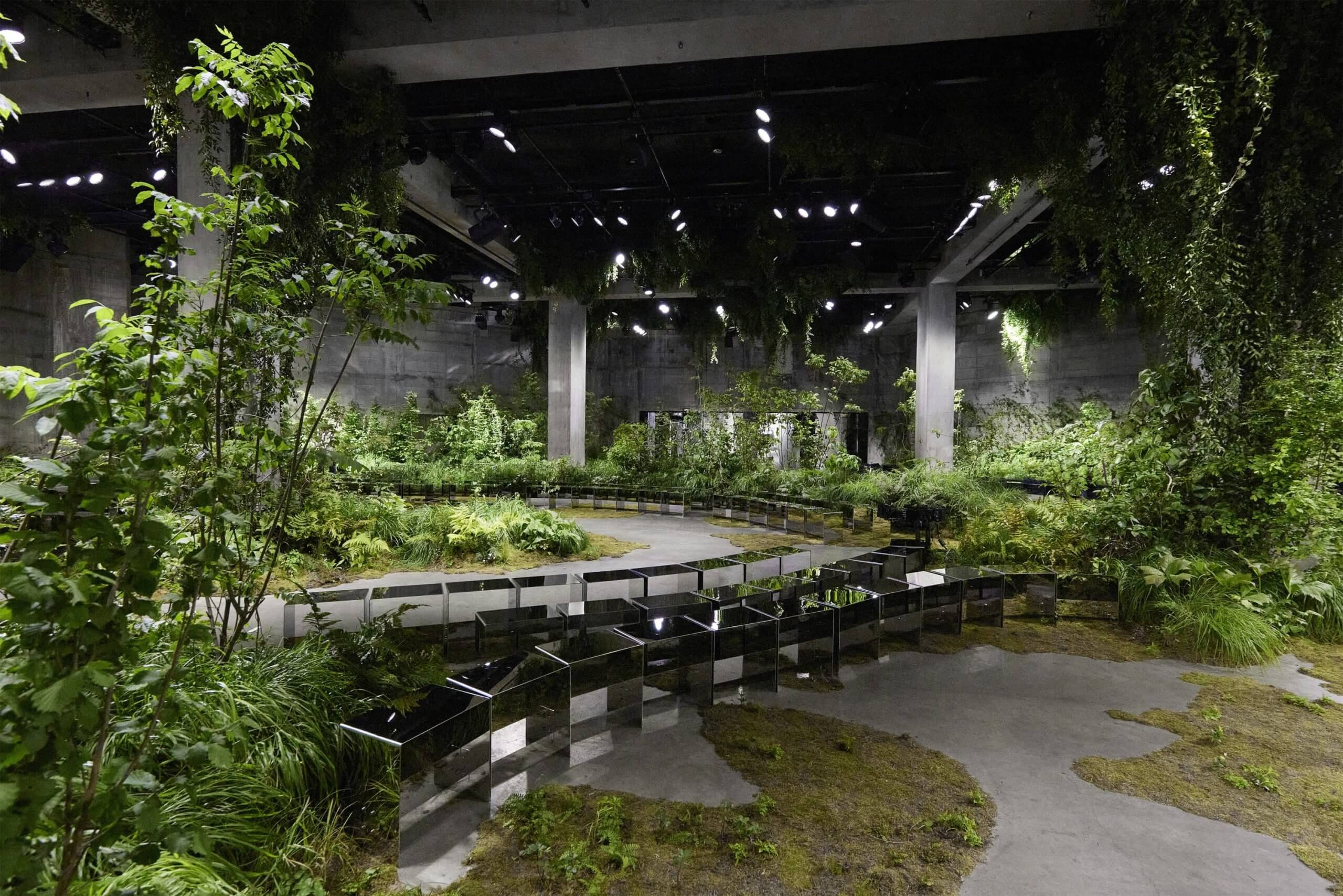 Nhà thiết kế trải một thảm cây xanh trên sàn bê tông đã đổ, trồng vài khóm hoa, treo vài mớ dây leo rũ từ trần nhà xuống và trồng những loại cây theo phong cách “Công viên kỷ Jura” xung quanh phòng. Không gian xanh đó không chỉ phục vụ cho show diễn, Gucci cho biết họ có kế hoạch quyên góp khoảng 10.000 cây từ buổi biểu diễn cho các dự án cộng đồng ở London, bao gồm cả tổ chức phi lợi nhuận Grow to Know.