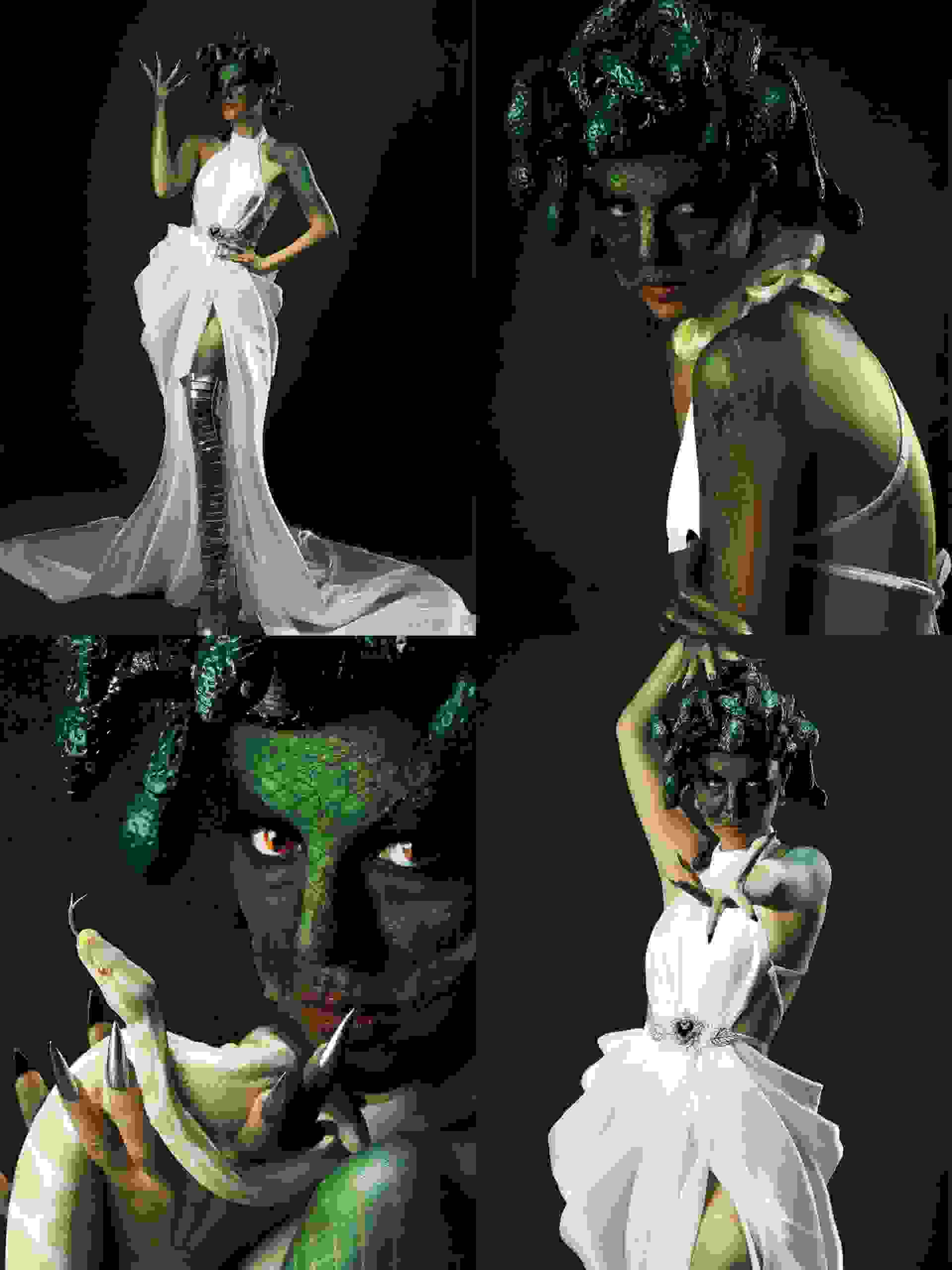Dù không hoạt động tích cực ở mảng thời trang nhưng nữ diễn viên Băng Di năm nào cũng được đánh giá cao bởi những màn hóa trang xuất sắc. Cô nàng hóa trang thành nữ hoàng rắn Medusa với bộ tóc rắn đặc trưng.