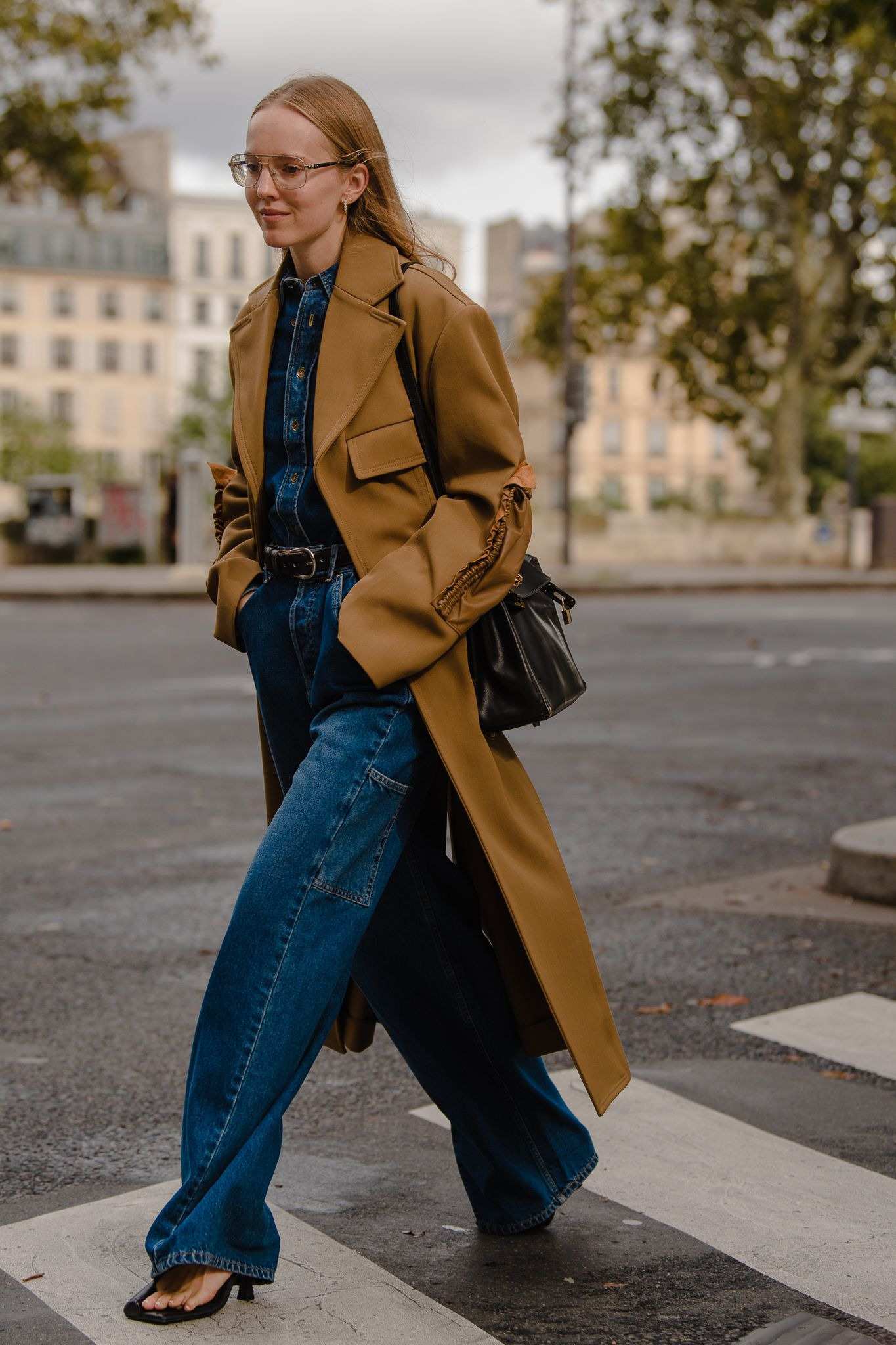 Thứ hai đầu tuần còn gì “formal” hơn với những chiếc áo khoác dài công sở nhỉ? Trench coat màu beige khoác ngoài set đồ phối cùng quần tây dài ống rộng, nhấn nhá bởi cặp kính đen sẽ là gợi ý hay ho đấy!