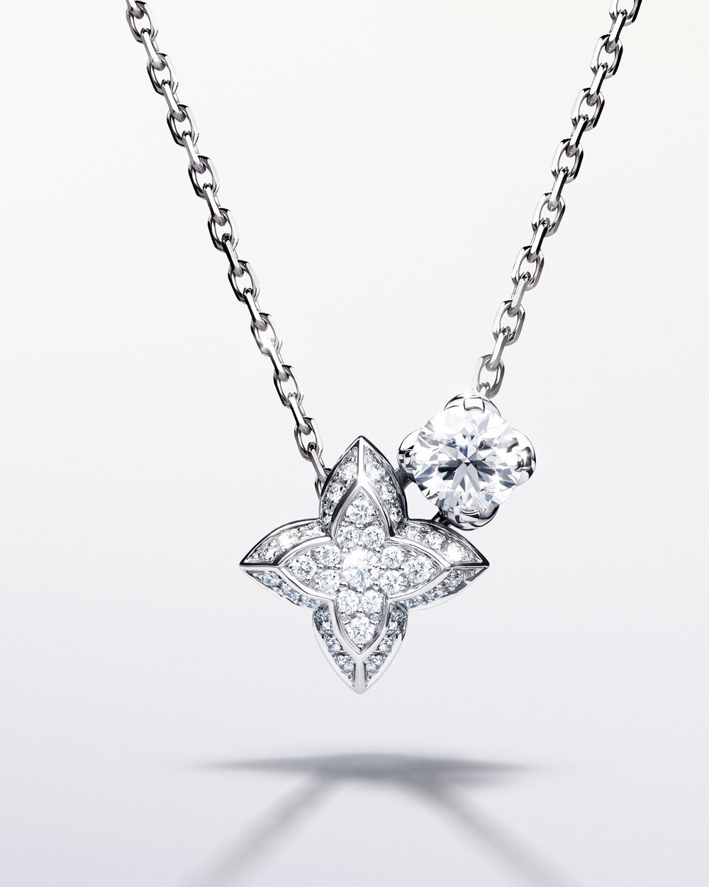 Bên cạnh đó, khuyên tai và dây chuyền kết hợp hài hòa giữa kim cương tròn cổ điển và hoa Monogram nạm kim cương, giúp người đeo tự tin tỏa sáng dù ở bất kỳ bản phối trang phục nào.