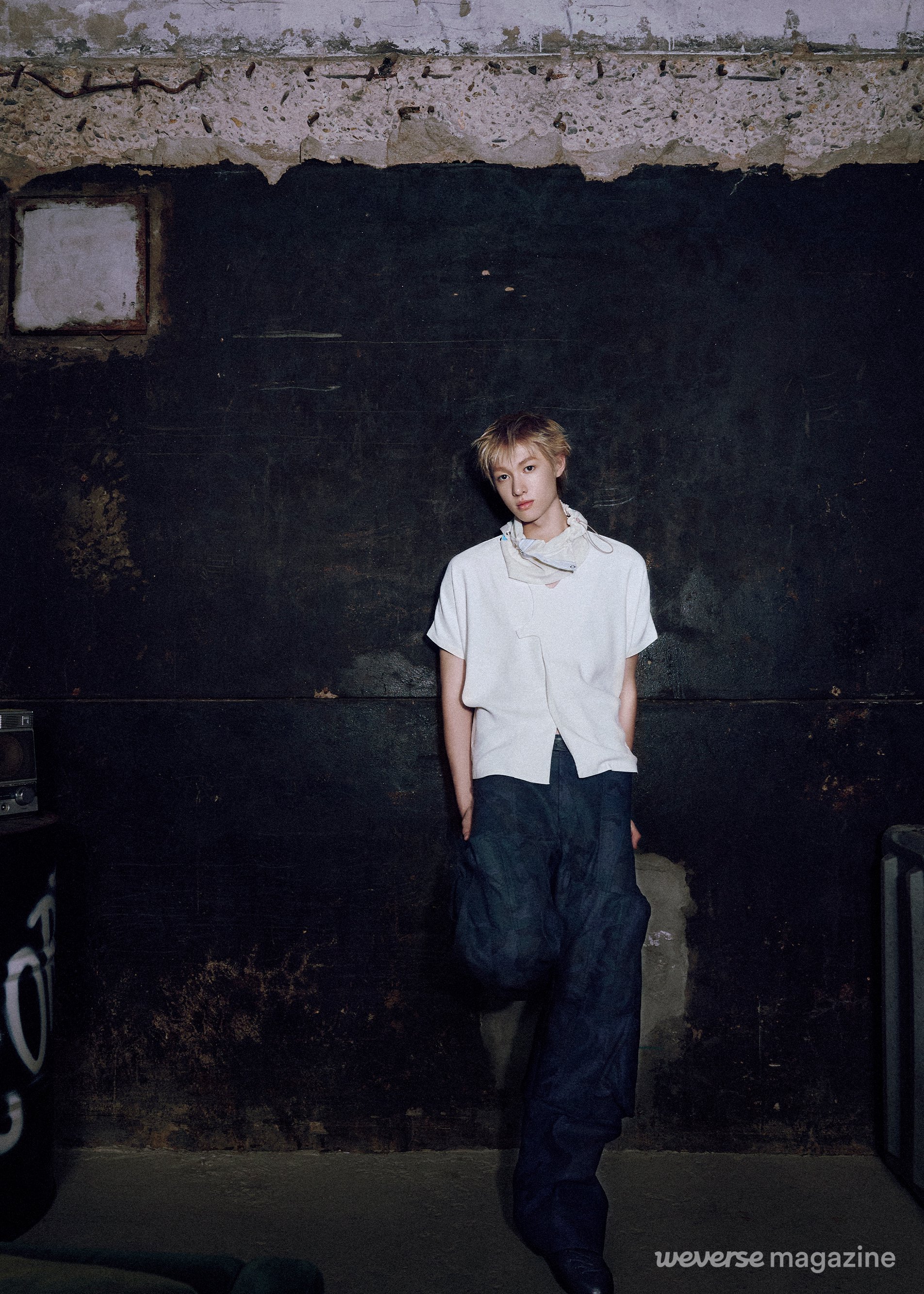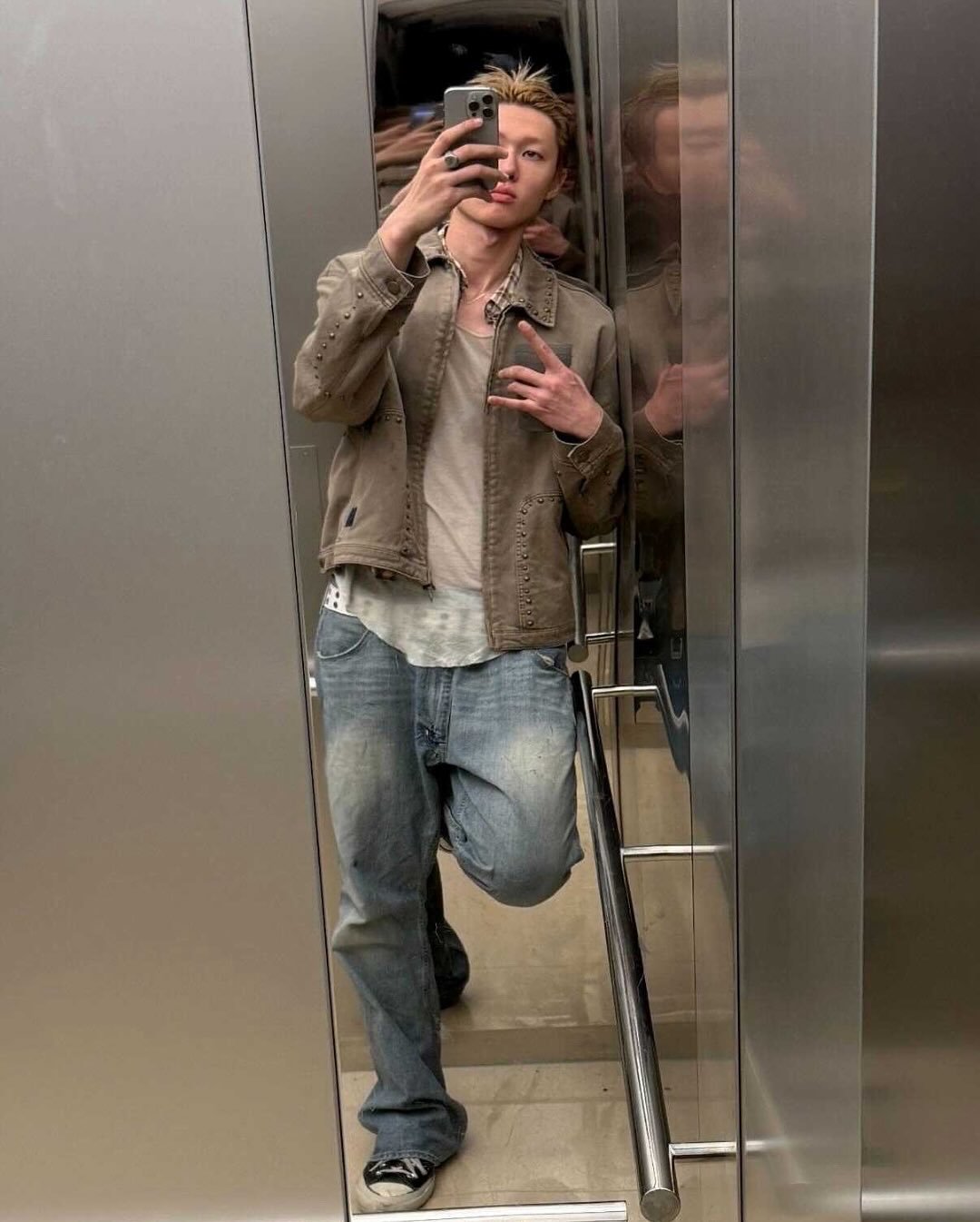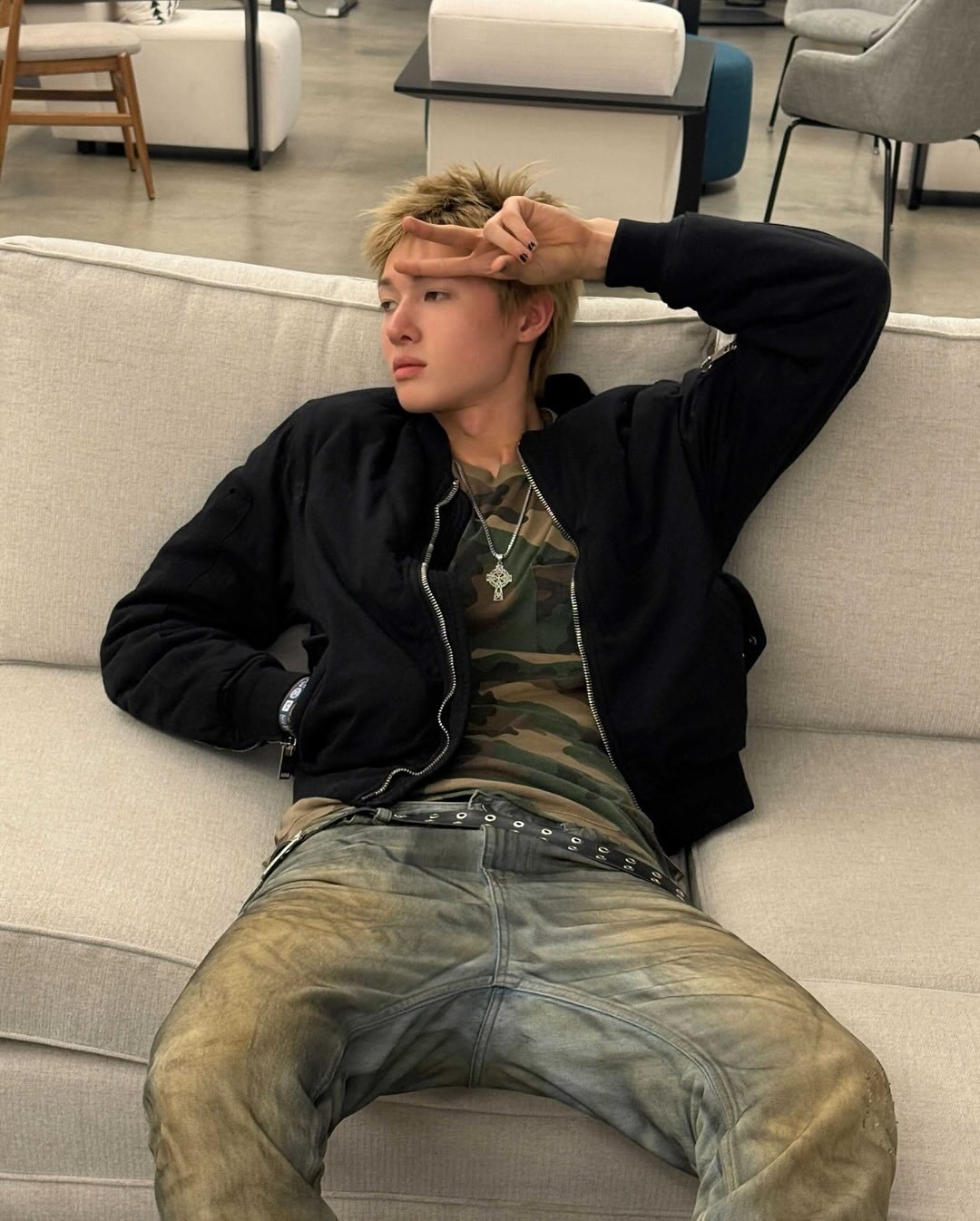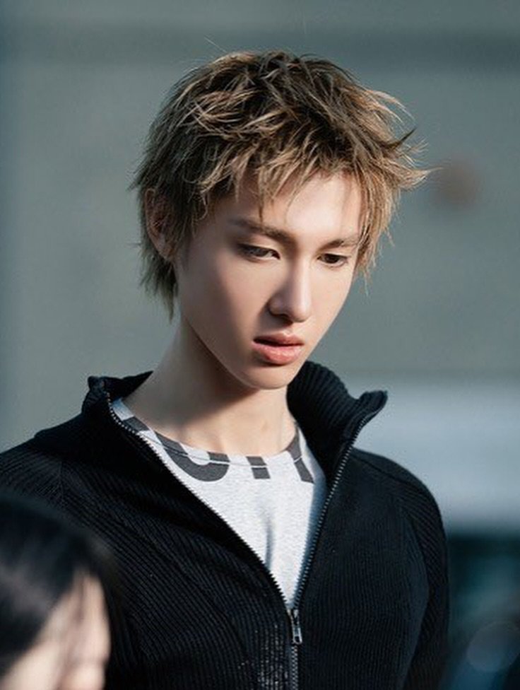 Tóc Ren là spiky, hơi lộn xộn. Martin biến thể thành messy layers, đôi khi để ẩm, dựng nhẹ bằng mousse – kiểu tóc của một người làm nghệ thuật trong thành phố nhưng hiếm khi đúng giờ. Dù mặc blazer, cậu vẫn có không khí của một ban nhạc đang chờ tập lúc tối. Martin không cosplay Ren. Nhưng nếu Ren Honjo thật sự bước ra khỏi trang truyện, sống trong thời trang 2025 và debut dưới ánh đèn K-pop – có lẽ anh ta cũng sẽ mặc như Martin.