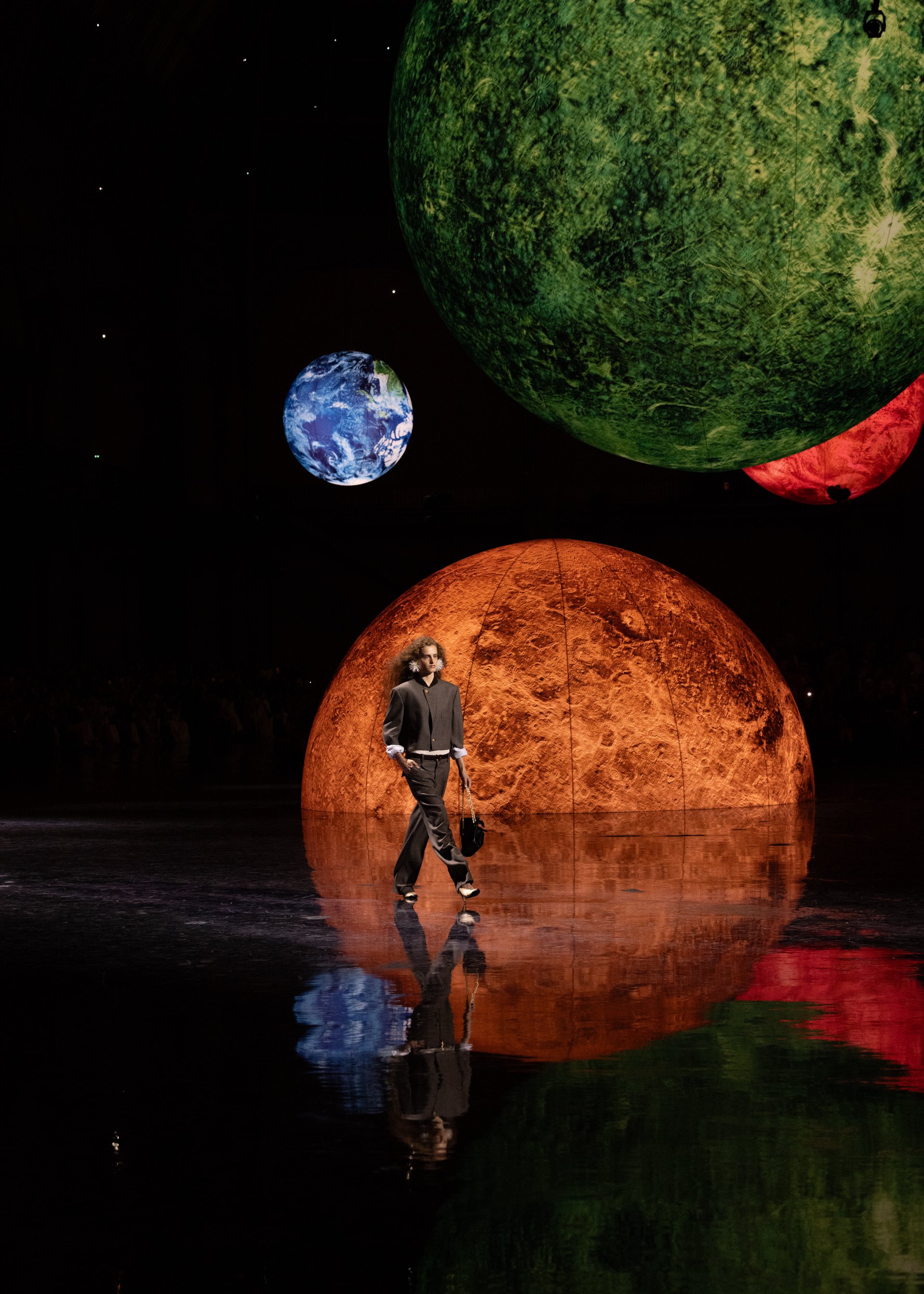 8 giờ tối, dưới mái vòm lịch sử Grand Palais, những quả cầu ánh sáng trôi nổi trên đầu người xem như gợi nhắc một hệ mặt trời Chanel đang khai sinh. Ở đó, người đàn ông từng gây sốc với tank top bằng da tại Bottega Veneta, Matthieu Blazy bước vào nhà mốt mang trong mình 115 năm di sản.