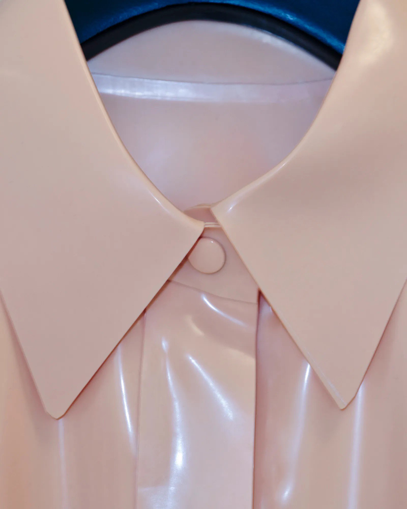 Quay về với trò chơi phom dáng, Freitas để trench coat làm từ vinyl và da, với bề mặt bóng loáng và đường cắt gọn gàng, tô vẽ lại hình ảnh “vampiric” của Catherine Deneuve và David Bowie trong The Hunger. Ngay cả những bộ suit dường như nghiêm ngặt, linear, với sleeve heads được cuộn về phía trước, gợi liên tưởng tới áo bó thẳng đai kiểu strait-jacket, đều được Freitas xử lý như những cấu trúc hình học. Đường may, đệm vai và độ mở nách không chỉ để định hình form mà còn để nghiên cứu tỷ lệ và silhouette, minh chứng cho khái niệm “khoa học của phom dáng” mà ông đề cập.