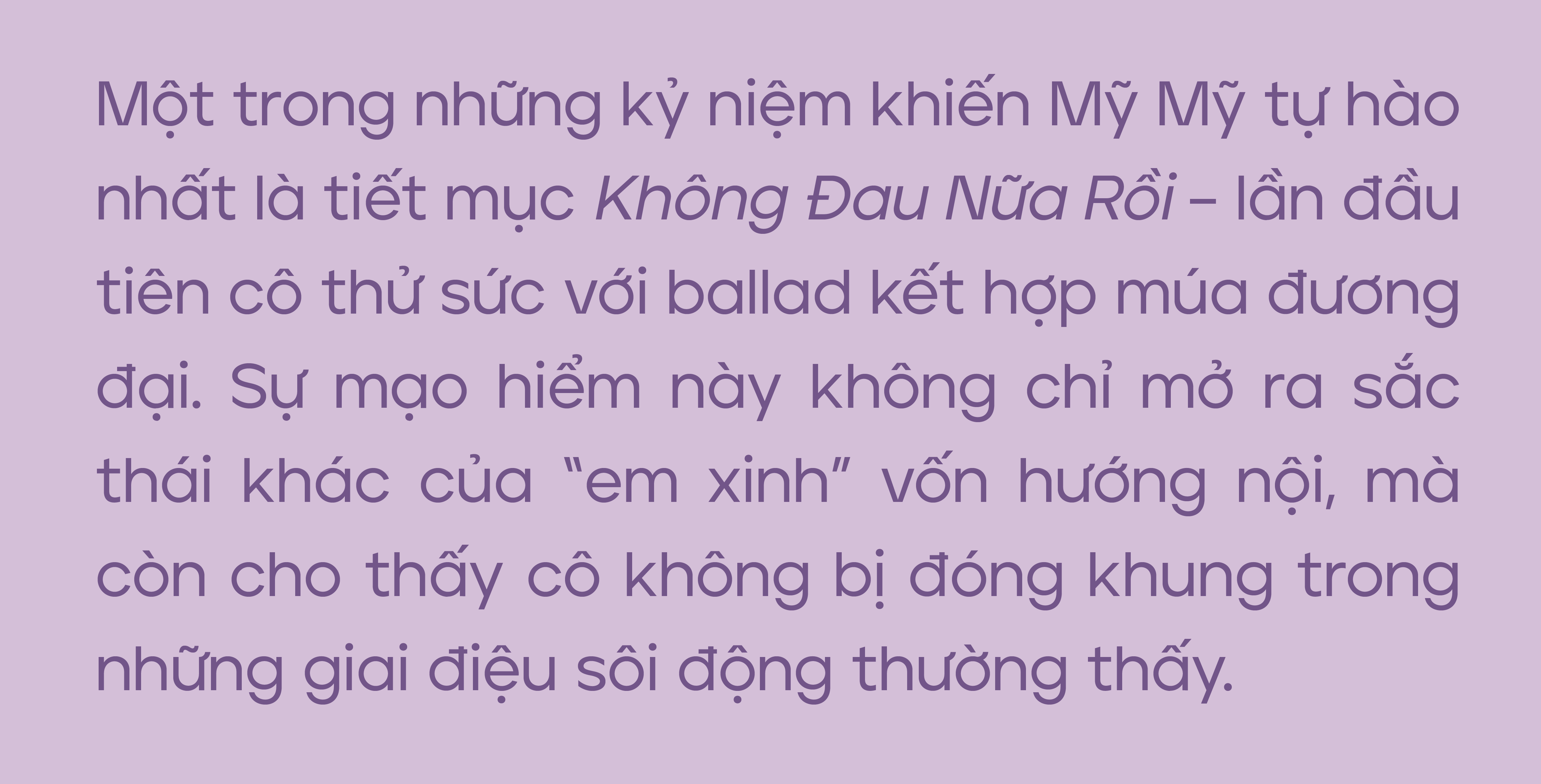 Không có nền tảng thanh nhạc bài bản, Mỹ Mỹ bắt đầu bằng sự thiếu hụt nhưng bù lại là tinh thần quyết liệt. Cô lao vào luyện tập, mài giũa giọng hát từng ngày để tự tìm lấy sự tự tin.