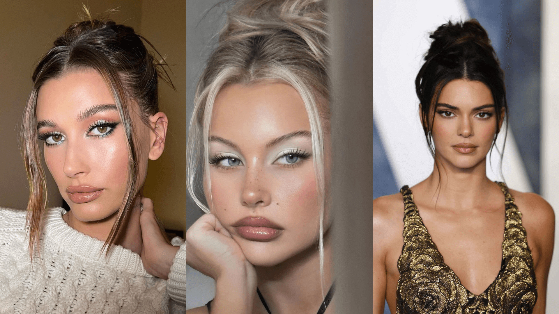 Layout trang điểm của những siêu mẫu ở những năm 90 đặc trưng với đôi mắt sắc, được điểm nhấn bởi hai đường kẻ eyeliner đậm ở mí trên lẫn mí dưới, và cặp chân mày mỏng. Tuy nhiên, để phù hợp hơn với lễ cưới cũng như tránh nổi bật hơn cô dâu, các nàng phải điều chỉnh và tiết chế lại ở phần mắt khói và chân mày. Nàng có thể tiết chế không kẻ mi dưới bằng chì đen, thay vào đó là phấn nâu nhấn ở đuôi mắt hoặc phần mi dưới được chải tơi. Đôi lông mày rậm chảy chuốt tự nhiên cũng đem lại sự tự nhiên và nhẹ nhàng hơn chân mày mỏng như lá liễu, đặc trưng của phong cách trang điểm ở những năm 90. Đừng quên hoàn thiện bằng những đôi môi màu sẫm, có kẻ chì cùng màu và nổi bật với lớp son bóng bẩy.