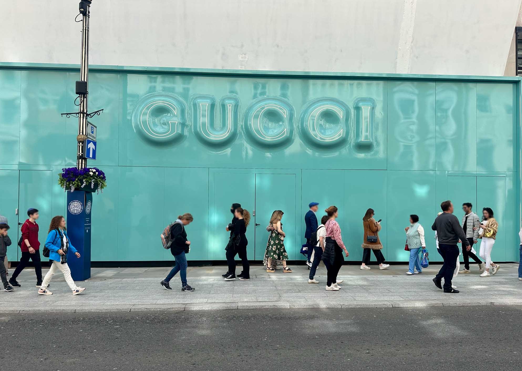 Sở hữu diện tích rộng 1.934 mét vuông và thương hiệu đã chuyển sang chi nhánh mới tại 144-146 New Bond Street thay vì địa chỉ cũ là 34 Old Bond Street. Sự kiện khai trương này đánh dấu lần xuất hiện vào thời điểm quan trọng của nước Ý. Khi doanh số bán hàng của thương hiệu Ý đang bị đình trệ và chủ tịch kiêm Giám đốc điều hành lâu năm Marco Bizzarri sẽ rời đi vào tháng 9. Về phần công ty mẹ Kering, họ đang phải vật lộn với những áp lực xung quanh việc cổ phiếu không ổn định và tình hình tài chính vốn đang tụt lại so với các tập đoàn xa xỉ khác là LVMH và Richemont. Giờ đây, quá trình tái thiết lập Gucci đang được tiến hành với đội ngũ lãnh đạo mới và sự mong đợi sâu sắc cho buổi trình diễn đầu tay của giám đốc sáng tạo Sabato de Sarno tại Tuần lễ thời trang Milan vào ngày 22 tháng 9.