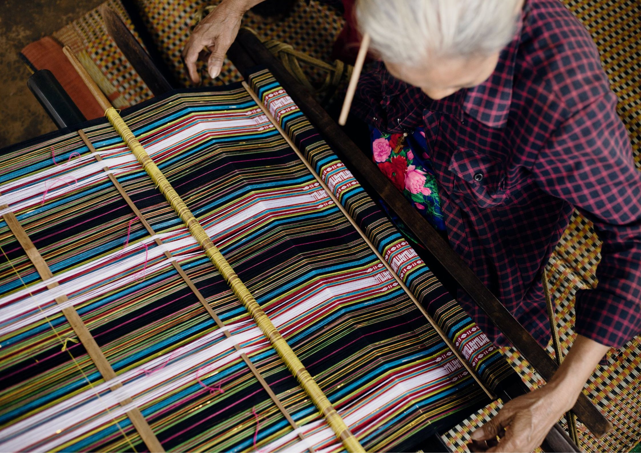Ở đó, những người phụ nữ Êđê vẫn ngày ngày chịu sương gió, đôi tay bám riết lấy từng sợi chỉ thổ cẩm như bám lấy chính chén cơm manh áo của mình. Dệt vải với họ không chỉ là một công việc. Đó là vòng tuần hoàn của đời sống, là ký ức, là niềm tự hào, là cội nguồn chảy trong từng đường nét hoa văn.
