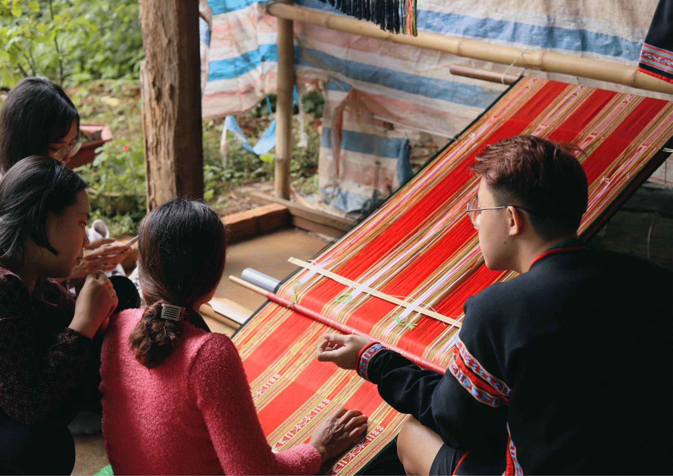 Đơn cử là hành trình đến Tây Nguyên để ghé thăm những nghệ nhân dệt thổ cẩm buôn Hra Ning, xã Dray Bhăng, huyện Cư Kuin, tỉnh Đắk Lắk, nơi La Quốc Bảo hợp tác cùng Hội Từ Tâm Đắk Lắk để tìm lại hơi thở nguyên sơ của nghề dệt thổ cẩm. Anh kể, khi đặt chân đến đây, trước mắt anh là một “căn nhà” nhỏ - chữ “căn nhà” buộc phải đặt trong ngoặc kép, bởi nó không có vách tường, mà đơn sơ một mái che tạm bợ giữa đất trời lộng gió. Ở đó, những người phụ nữ Êđê vẫn ngày ngày chịu sương gió, đôi tay bám riết lấy từng sợi chỉ thổ cẩm như bám lấy chính chén cơm manh áo của mình. Dệt vải với họ không chỉ là một công việc. Đó là vòng tuần hoàn của đời sống, là ký ức, là niềm tự hào, là cội nguồn chảy trong từng đường nét hoa văn. Mỗi tấm thổ cẩm sinh ra từ đôi tay ấy không chỉ là một sản phẩm, mà là một câu chuyện được nối dài từ quá khứ đến hiện tại.