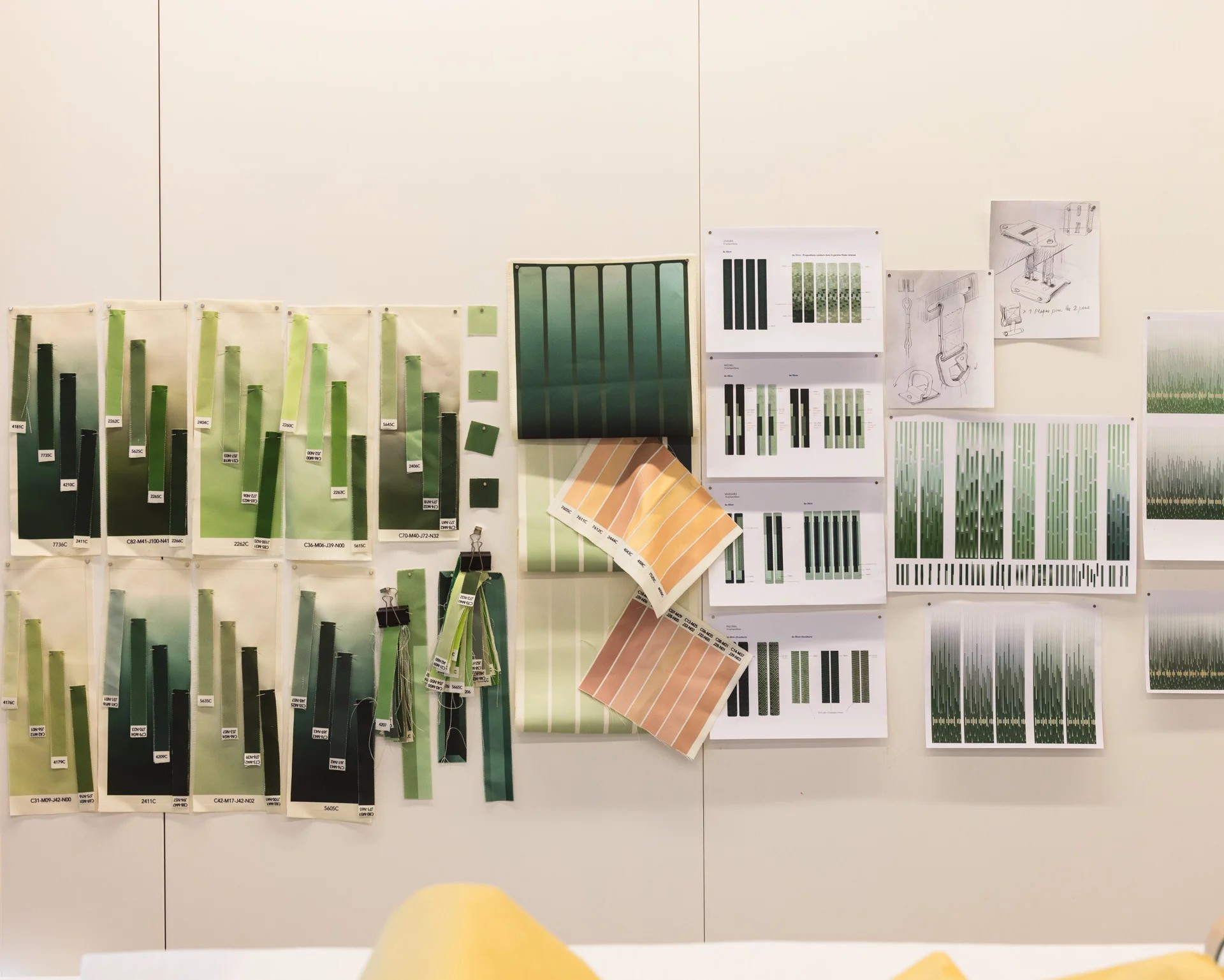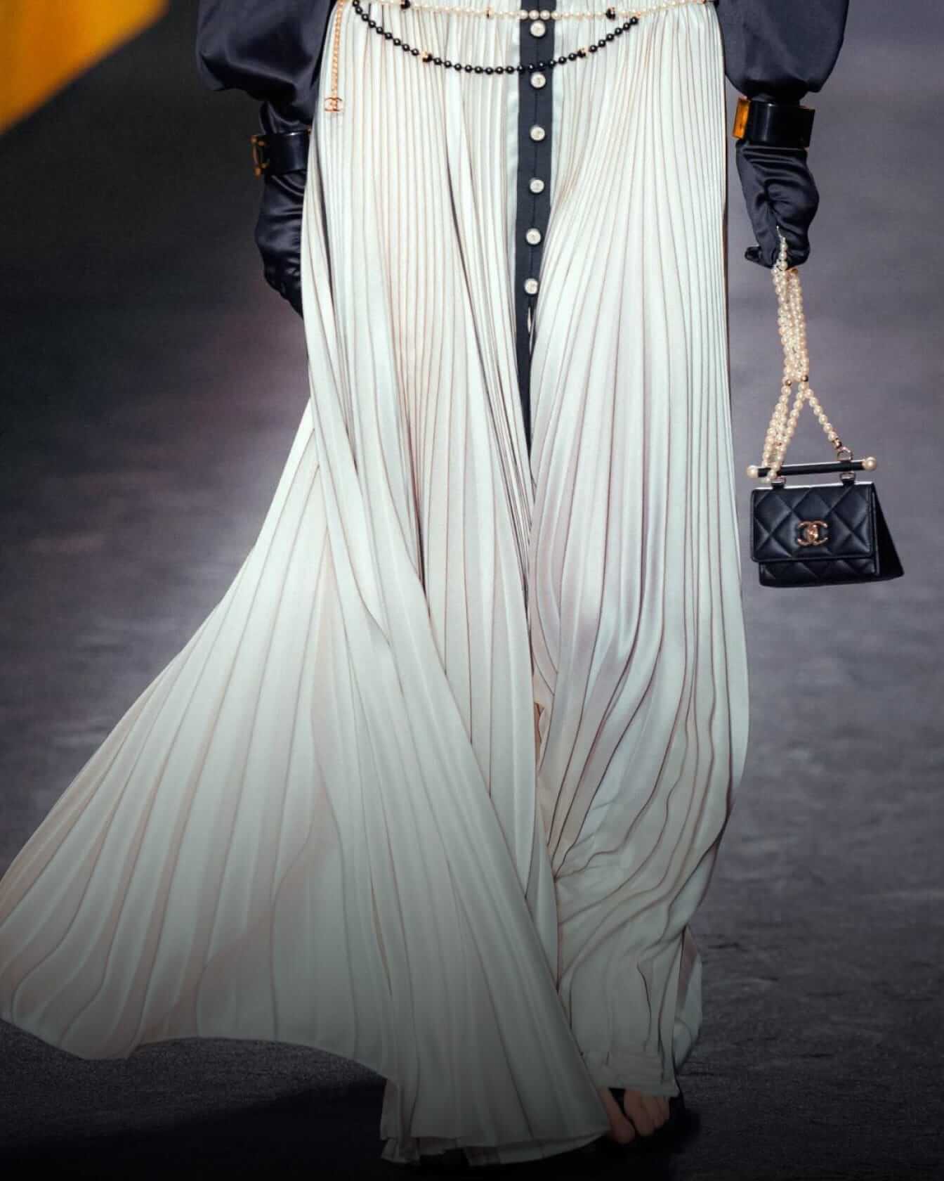Lognon, nhà cung cấp chất liệu vải xếp li từ năm 1945, kết hợp thủ công và máy móc để tạo ra những nếp gấp hoàn hảo, mềm mại nhưng vẫn có cấu trúc sống động.