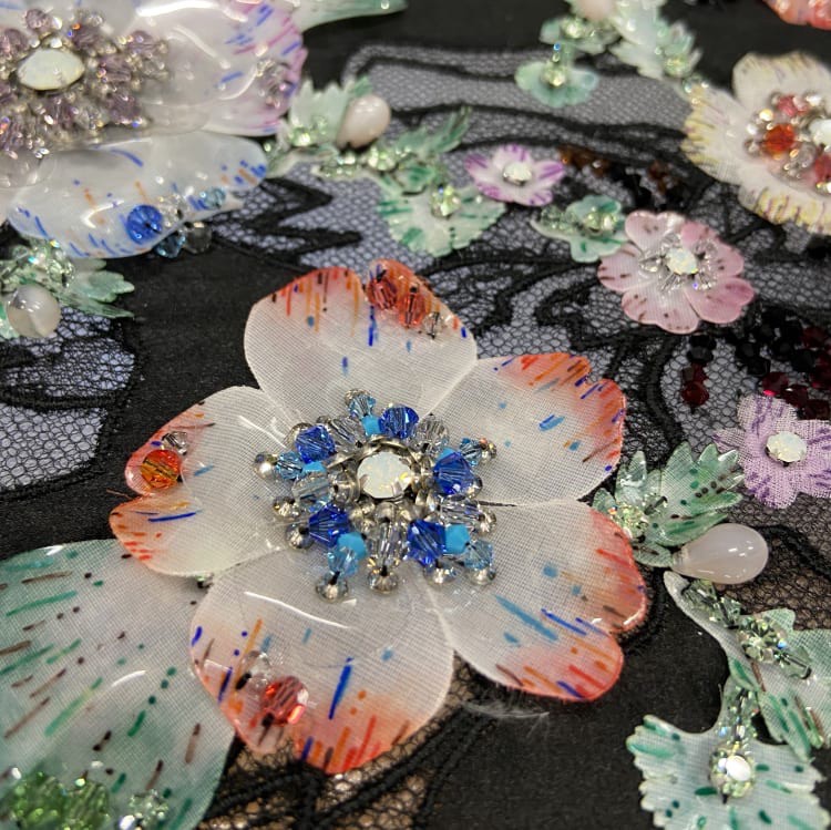 Những mô-típ gợi nhắc ký ức đô thị New York hay các chi tiết kết cấu bê tông, mặt đường, biển hiệu, hoàn toàn có thể được “dịch” sang ngôn ngữ thêu của Montex dưới dạng những lớp texture đa chiều. Ở đó, đường kim gợi tả sắc xám kim loại như tiếng tàu điện chạy qua Manhattan; những dải sequin dài như vệt đèn trong sương; hay những chuỗi cườm xếp lớp tạo cảm giác rung nhẹ như hơi nóng bốc lên từ mặt đường ngày Hè.
