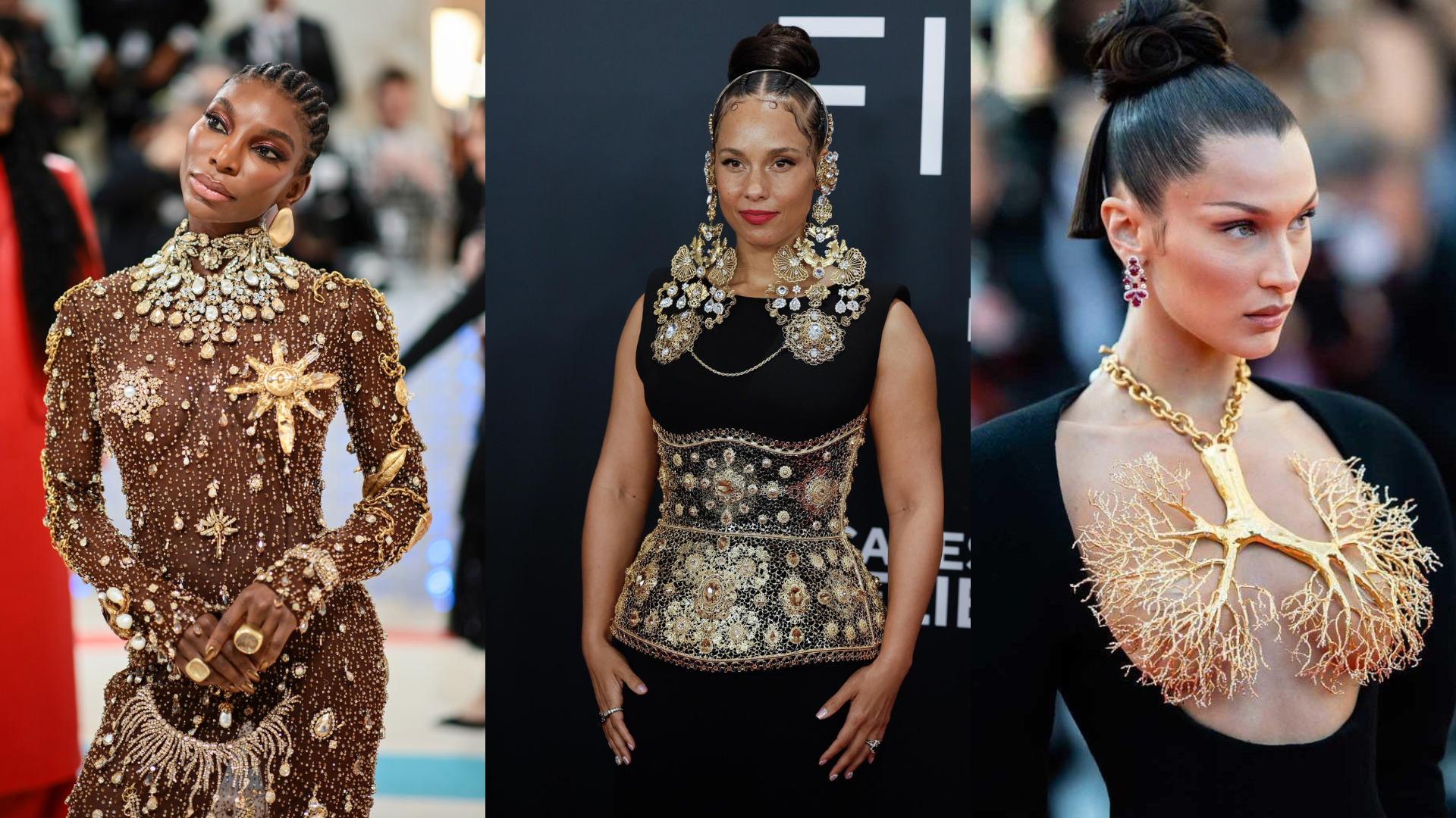 Dress code "Gloss Iss The New Glam" làm chúng ta nhớ đến chiếc mũ len kết hợp băng đô đính đá hay chiếc vương miện đúc vàng của Rihanna tại hai mùa giải Met Gala; cũng như chiếc mũ trùm disco mà nữ ca sĩ diện trong show diễn cuối cùng của Alessandro Michele cho Gucci,...Bên cạnh phụ kiện dành cho tóc và gương mặt đó, khách mời tại SR Fashion Awards 2025 có thể tham khảo cách Nicki Minaj, Doja Cat hay siêu mẫu Naomi Campbell dẫn đầu xu hướng với làn da "kim cương".