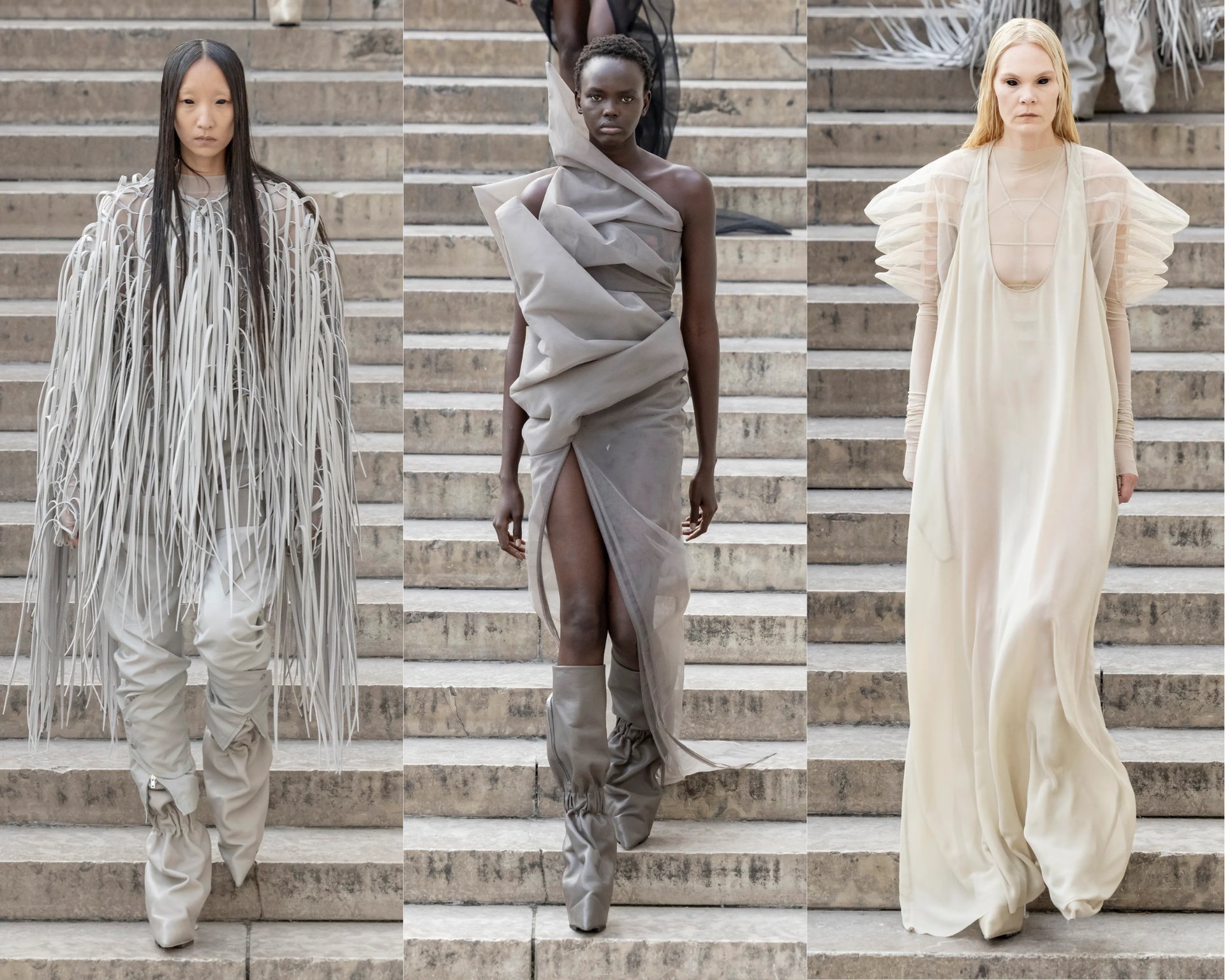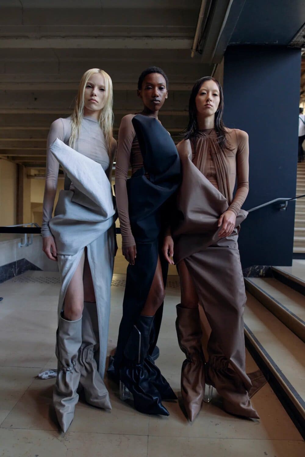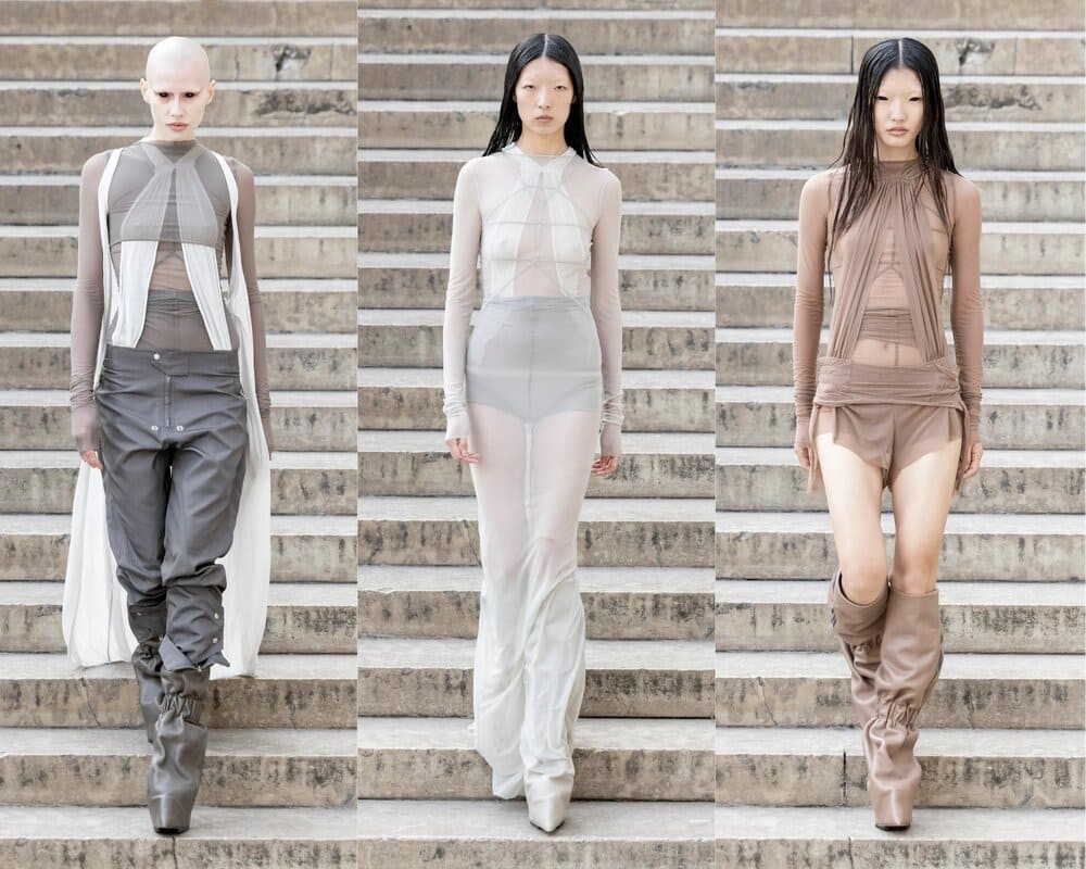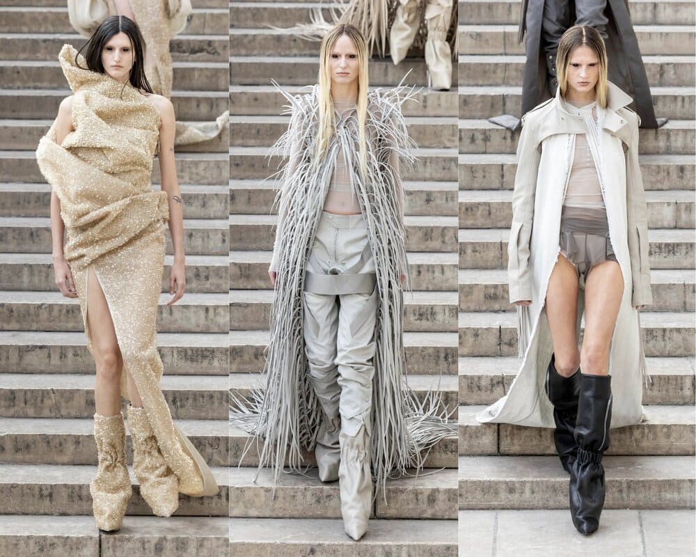 “Những bộ trang phục này mong manh và đẹp đẽ, nhưng trong sự đẹp đẽ ấy vẫn ẩn chứa một sự rắn rỏi… Trong những giai đoạn bất ổn của lịch sử, sự kiên cường là điều tối quan trọng” (tạm dịch), Rick Owens chia sẻ.