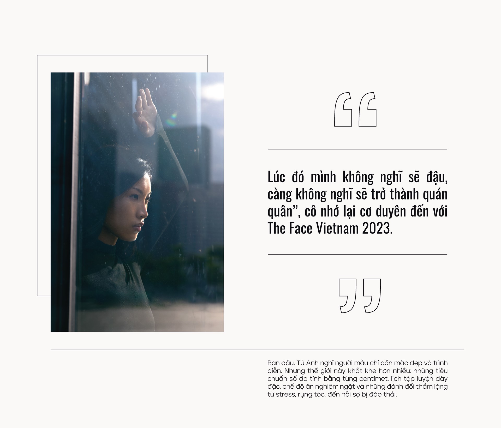 Trước khi có một Tú Anh quán quân, một Tú Anh sải bước trong show của nhà mốt xa xỉ bậc nhất, đã có một cô gái từng làm việc tại cửa hàng tiện lợi, rong ruổi khắp phố với xấp tờ rơi trên tay, làm mẫu makeup với mức thù lao 20.000 đồng một giờ.