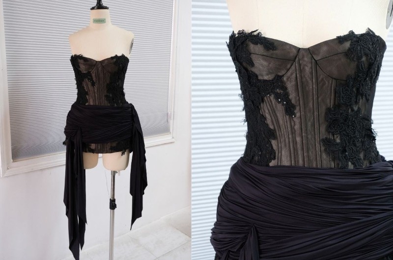 Tại Waterbomb 2025, Dara chọn một thiết kế corset lấy cảm hứng Gothic cổ điển nhưng được hiện đại hóa với phom ôm sát, lớp ren bất đối xứng và nếp gấp chuyển động quanh eo, vừa mềm mại vừa khí chất như một chiến binh.