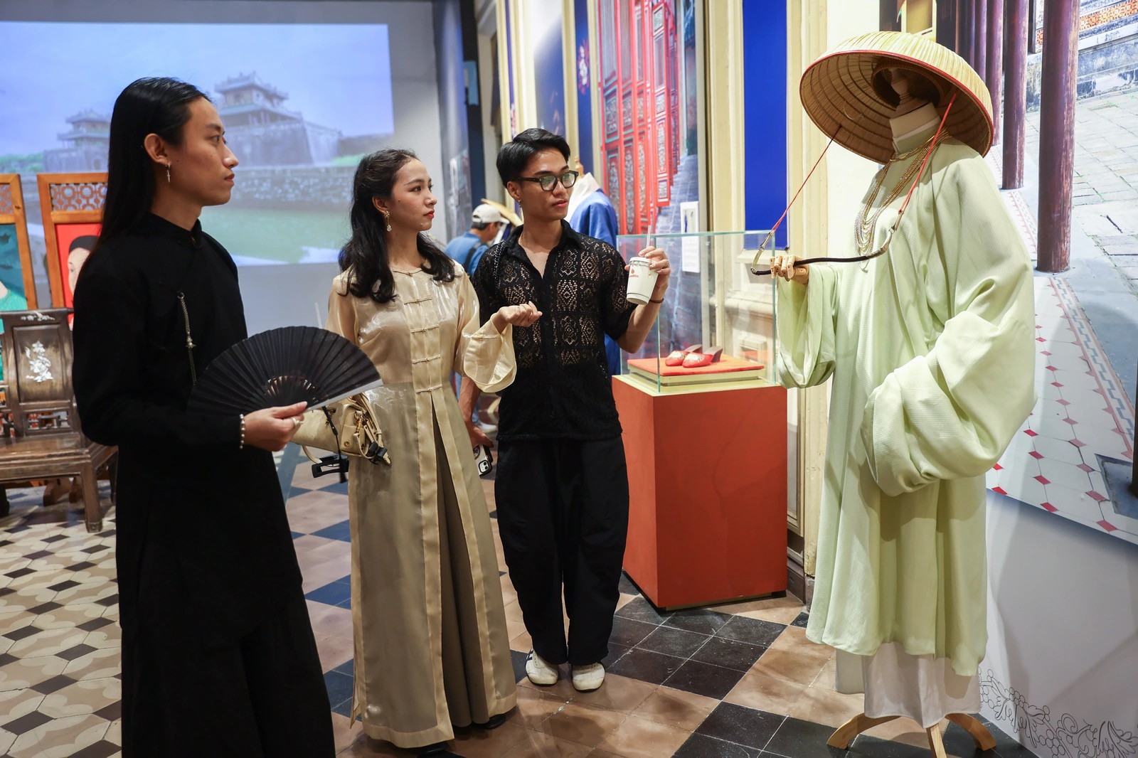 Bên cạnh đó, nhật bình, lễ phục dành cho nữ hoàng tộc và vợ quan lại cấp cao, cũng được tái hiện. Một số mẫu lấy cảm hứng từ bức ảnh Công chúa Mỹ Lương, chị gái vua Thành Thái, kết hợp nhiều tư liệu để tái hiện đúng tinh thần trang phục triều Nguyễn. Triển lãm còn trưng bày phụ kiện đi kèm như trang sức, thẻ bài, mũ mão, giúp người xem hình dung toàn diện đời sống y phục và nghi lễ của người Việt xưa.