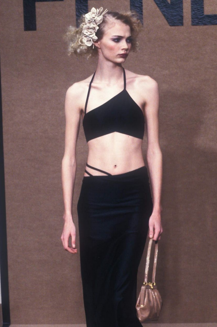 Nhà thiết kế Casey Cadwaller của nhà mốt Mugler càng được biết đến với việc sử dụng các loại vải co giãn tuyệt đối để tạo đường nét mới cho cơ thể, thông qua các khoảng được cắt, xẻ cẩn thận, các đường phân chia uốn lượn và thắt dây bất đối xứng của anh ấy đã có mặt trong hầu hết các xu hướng áo crop top của mùa hè năm nay.