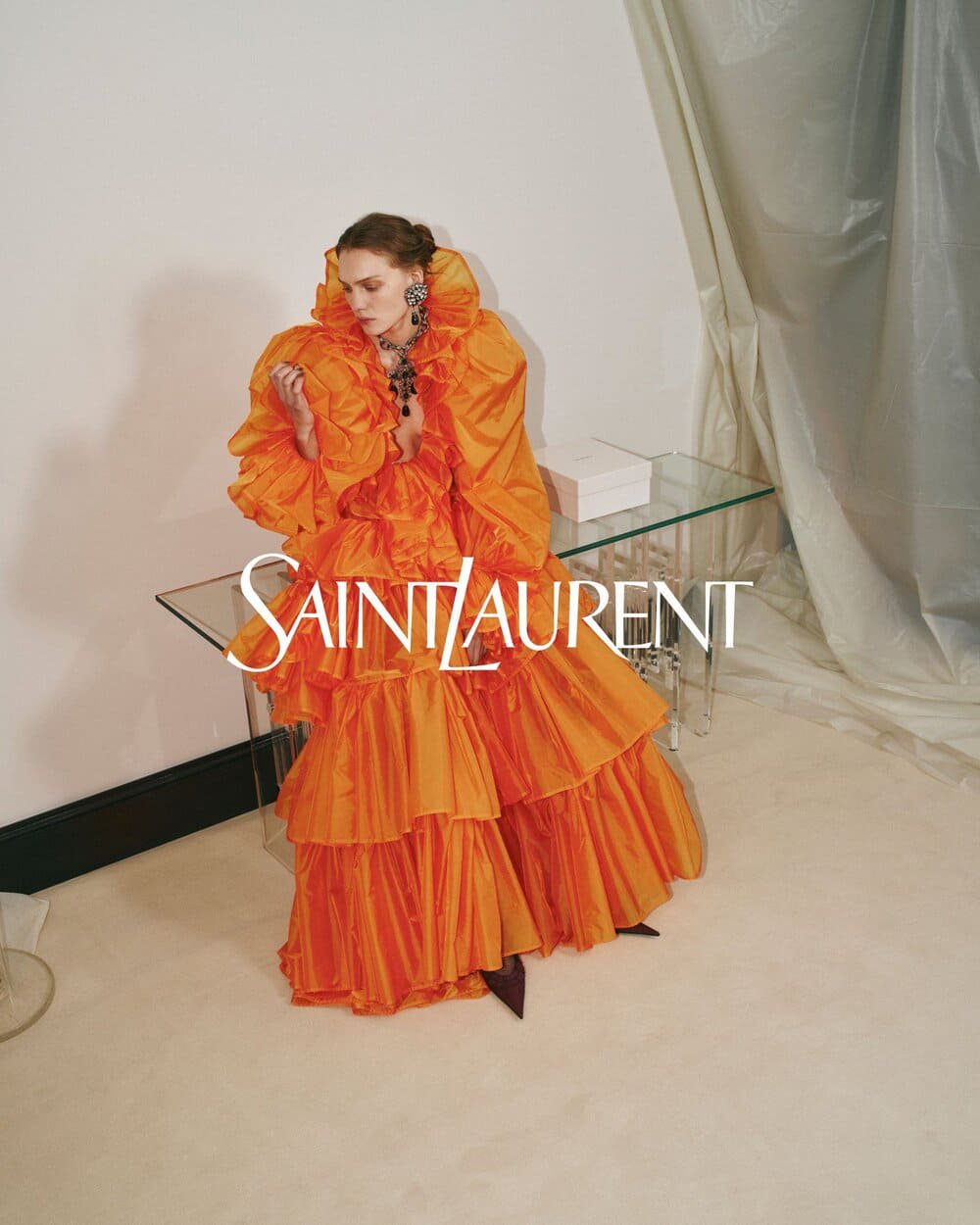 Trong thời đại mà ngay cả thảm đỏ Venice hay Cannes, phụ nữ vẫn thường bị “nhắc khéo” phải che kín vai, ngực, hay chọn những chiếc đầm an toàn, Vaccarello chọn cách khiêu khích trực diện. Ông không tìm sự dung hòa, mà đẩy cơ thể ra tiền tuyến của cuộc tranh luận về tự do phái nữ. “Vẫn xoay quanh sự khỏa thân,” ông nhún vai khi được hỏi. “Một sự đối đầu chăng?” – “Đúng. C’est Saint Laurent.” Nói rồi ông cười. Và cái cười ấy không đơn giản: nó phảng phất tinh thần Yves Saint Laurent của thập niên 1970, khi sex, glamour và permissiveness từng được coi là DNA của Paris by night, được Helmut Newton hay Guy Bourdin biến thành những hình ảnh vừa đẹp, vừa nguy hiểm. Vaccarello khơi lại ký ức ấy, nhưng đặt nó vào một thời đại mà khỏa thân trở thành chủ đề gây tranh cãi hơn bao giờ hết.