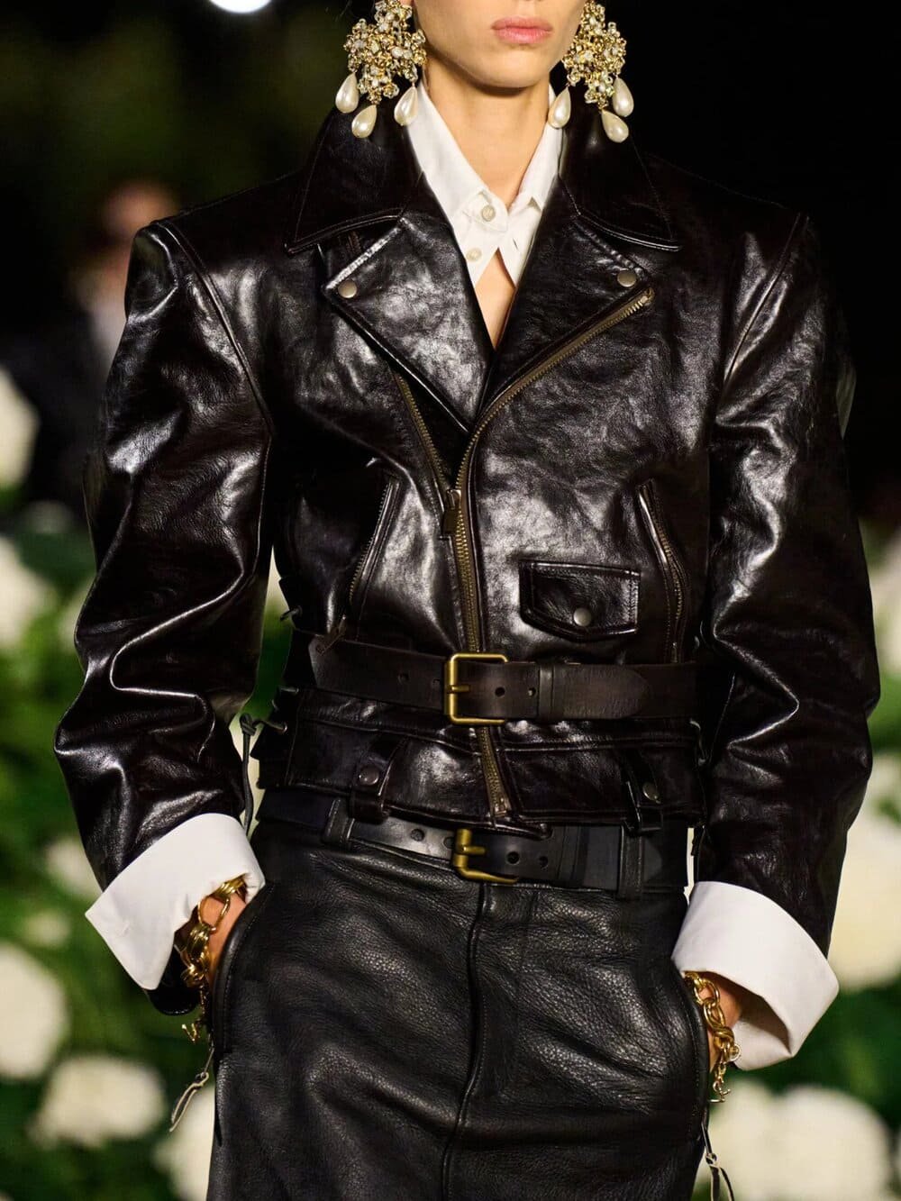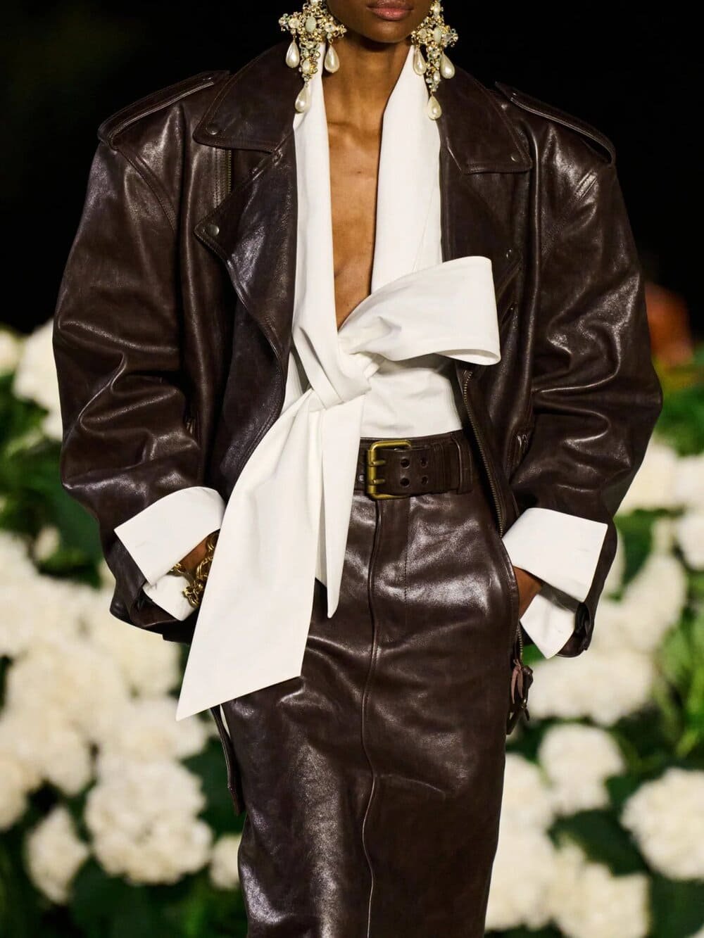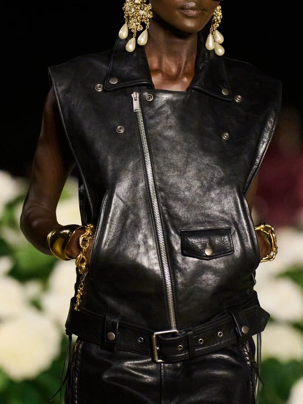 Ở đây, da không chỉ là chất liệu thời trang. Nó là giáp trụ, là dấu hiệu của sự kháng cự, và cũng là công cụ chiếm lĩnh quyền lực. Vaccarello biến từng bộ trang phục thành hành động chính trị: mỗi bước đi trên sỏi đá Trocadéro là một cách định nghĩa lại không gian công cộng. Phụ nữ mặc da không phải để gợi dục, cũng không phải để làm hài lòng ánh nhìn nam giới; họ mặc để tuyên bố mình là chủ thể.