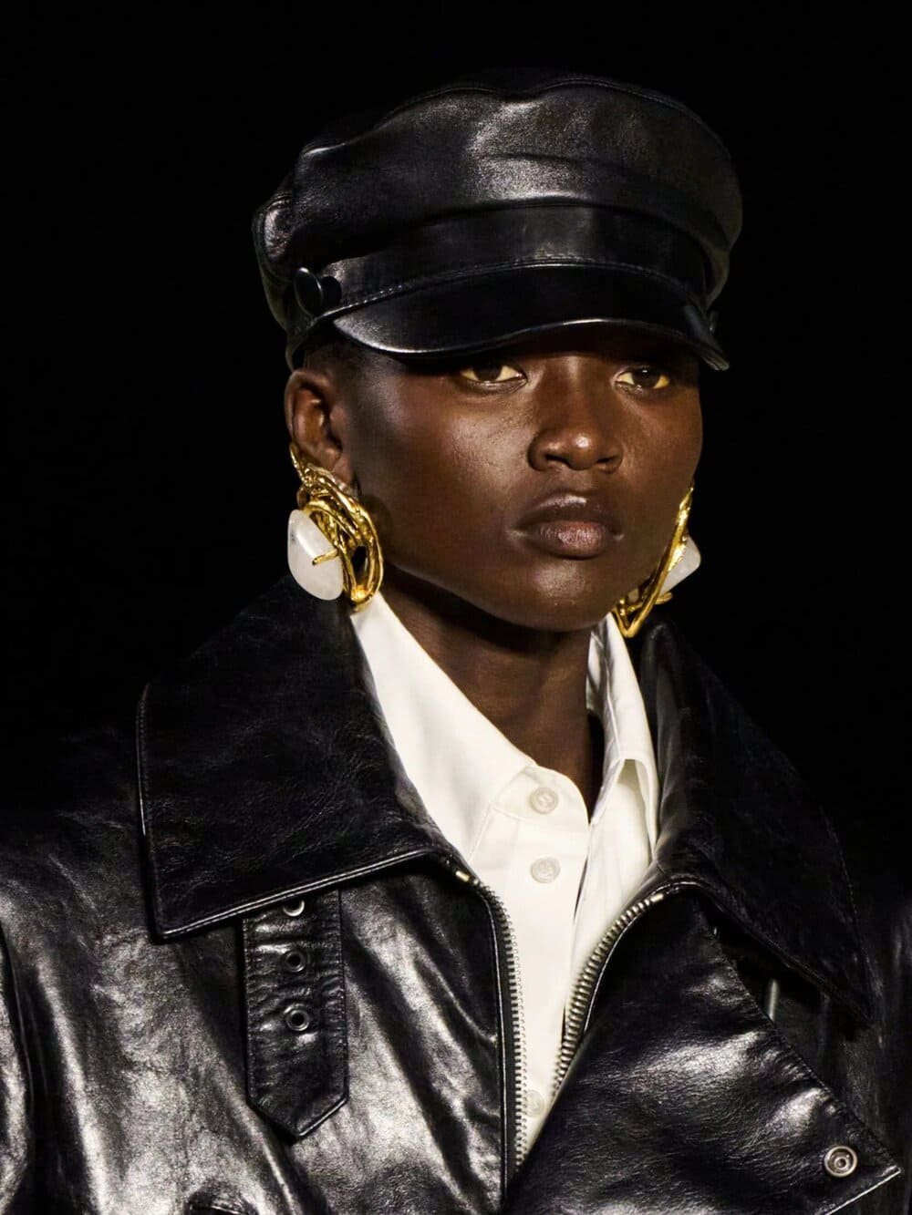 Trong xã hội vẫn ám ảnh bởi việc phụ nữ phải che giấu cơ thể, Saint Laurent chọn cách khoác lên họ lớp da bóng như vũ khí: vừa che chở, vừa phô bày, vừa đe dọa. Những chiếc corset da ôm sát không làm họ nhỏ bé mà biến thân thể thành biểu tượng sức mạnh. Những chiếc mũ quân đội gợi đến kỷ luật, nhưng lại được chiếm đoạt để trở thành vương miện cho kẻ thống trị mới. Đó là hành động thị phạm mang tính subversive: phụ nữ không còn là kẻ bị nhìn, mà là kẻ đi săn, sải bước giữa đêm Paris với một quyền lực sắc lạnh không thể tranh cãi.