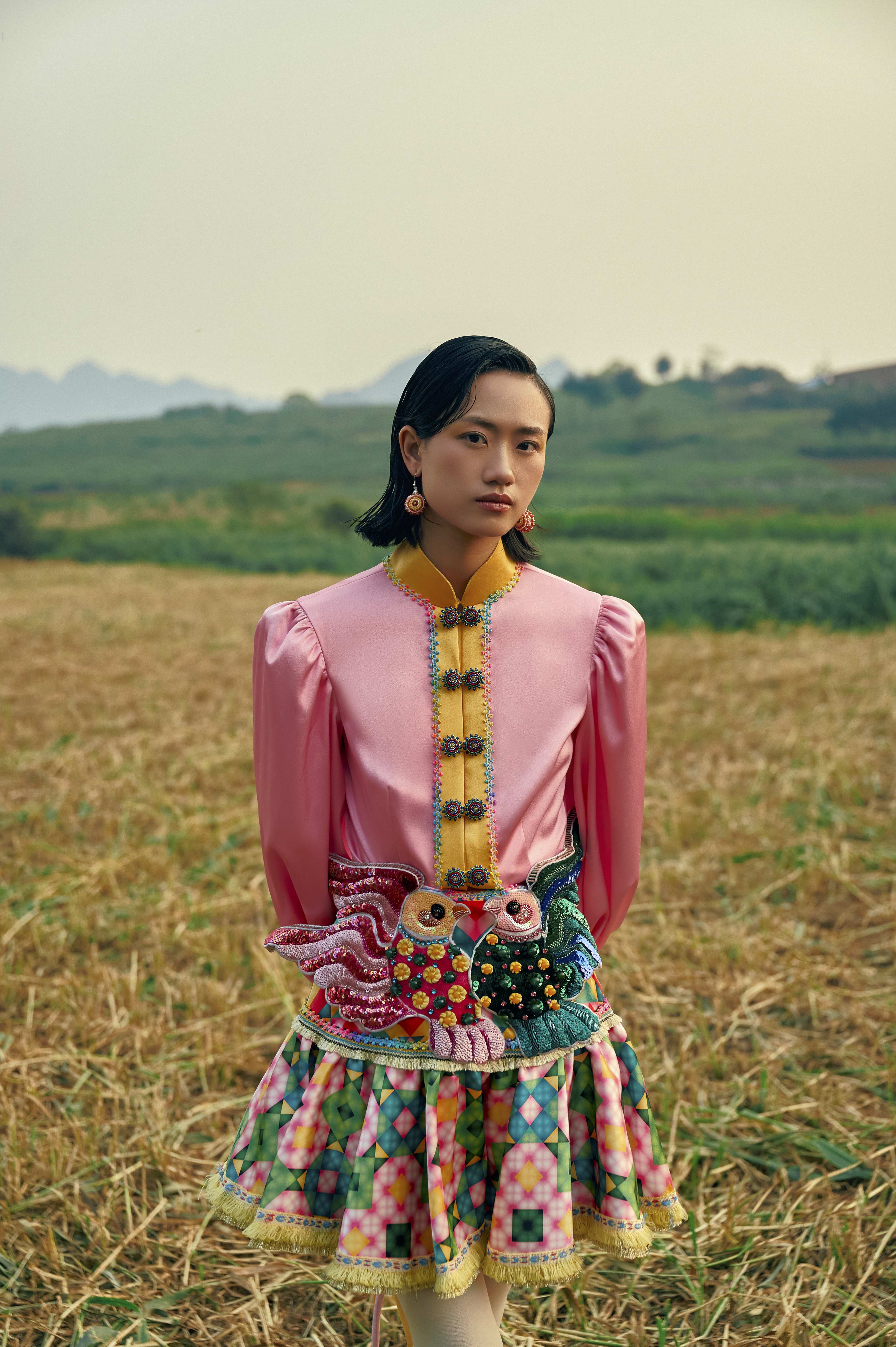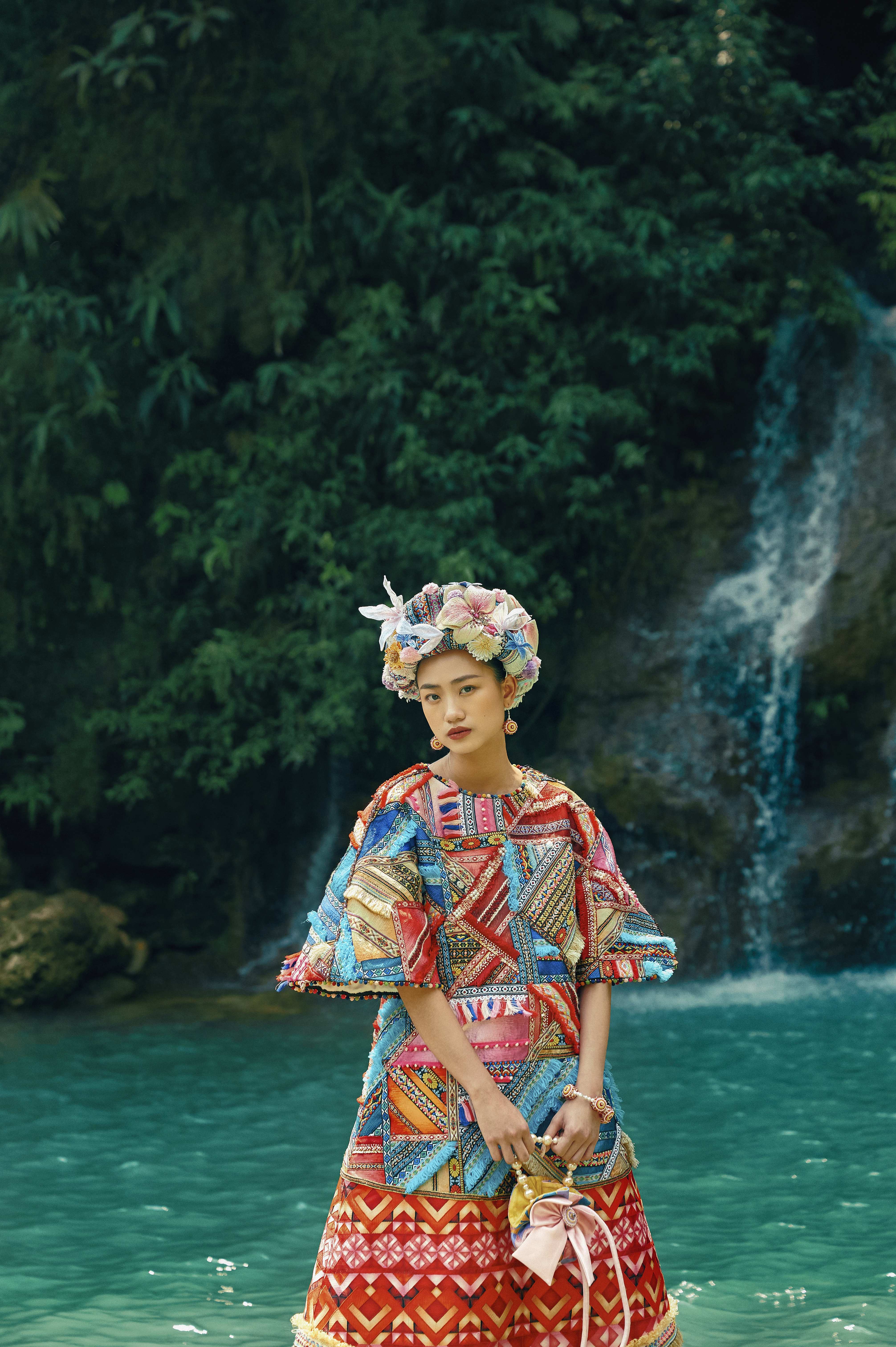 Những họa tiết cách điệu xuất hiện trong BST như hoa ban, hươu sao, ngôi sao tám cánh hay đôi chim đều được lựa chọn và phát triển từ những hình ảnh quen thuộc trên vải thổ cẩm thêu kết tỉ mỉ và rực rỡ gắn liền với đời sống tinh thần của phụ nữ dân tộc Thái. Sáng tạo và nhạy cảm, họ tìm thấy sự rung động từ muôn hình vạn trạng trong đời sống hàng ngày và thổi vào chúng hơi thở cá nhân không thể trộn lẫn.