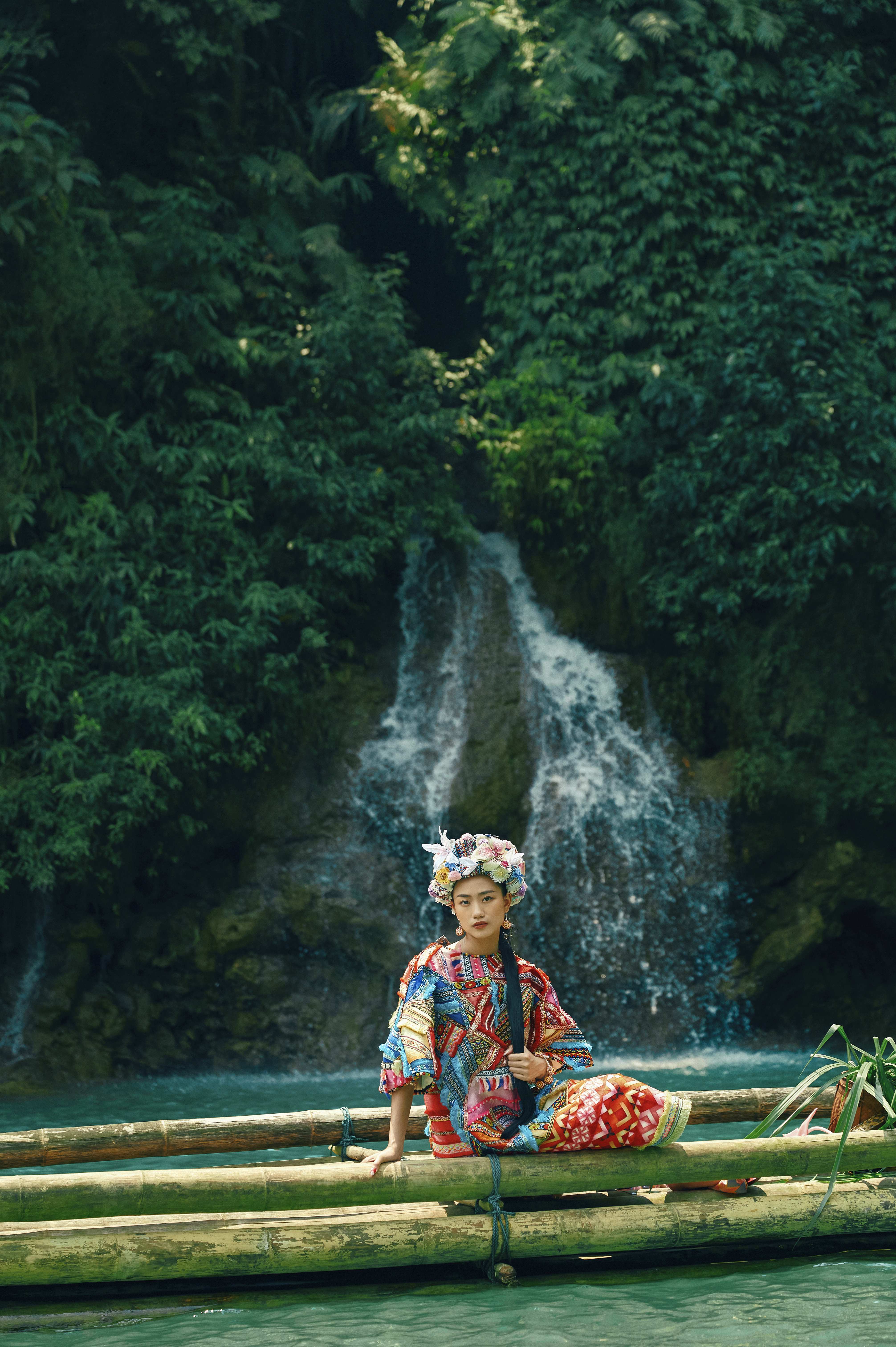 Lời ca trữ tình vang vọng của bài hát “Chiếc khăn Piêu” như tiếng gọi tình yêu lứa đôi mở ra không gian của những triền núi hùng vĩ, những cánh rừng hun hút bạt ngàn của vùng cao Tây Bắc, nơi diễn ra đời sống của những con người chân phương, tự do mà gắn kết sâu sắc bởi những mối nối vô hình lẫn hữu hình, nồng nàn đến lạ kỳ. Đây cũng chính là cảm hứng để NTK Thủy Nguyễn tạo ra BST mới nhất với tên gọi “Tơ Hồng.”