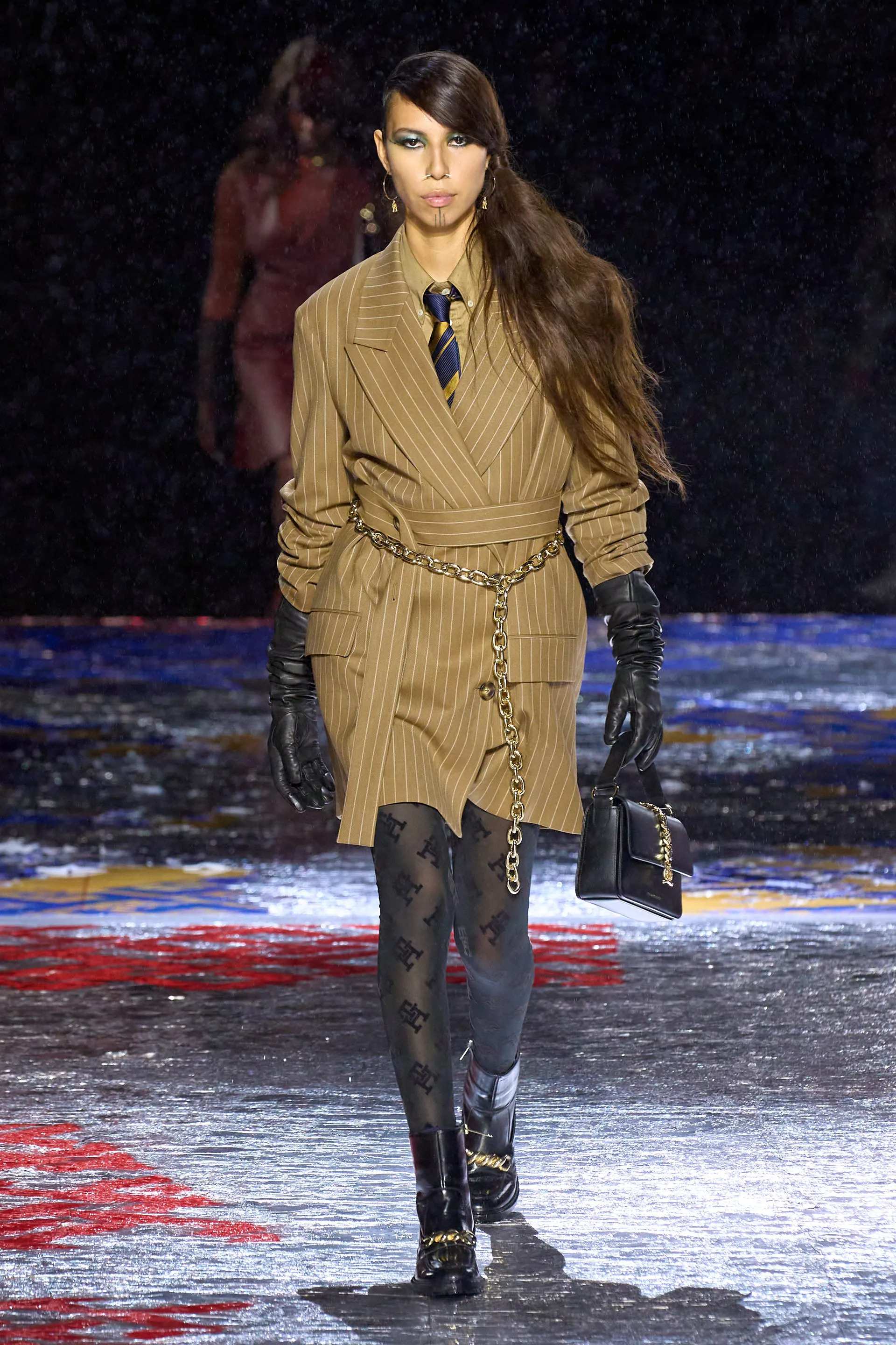 Hilfiger chia sẻ: “Andy thực sự truyền cảm hứng cho tôi trong cách tiếp nhận văn hóa đại chúng và đưa điều đó trở thành cốt lõi trên chặng đường sáng tạo và cả kinh doanh sau này.” Và lần quay lại này, nhà mốt đã phản ánh một Warhol Factory bên trong Tommy Factory. Một cơn mưa bất chợt, ngoài sự tính toán của nhà mốt đã chào đón show diễn sau 3 năm vắng bóng. Tưởng chừng là một điều kiện bất lợi nhưng may mắn thay cơn mưa dường như đã làm tăng thêm độ gai góc, một vẻ ngoài cứng cỏi, nổi loạn, một tinh thần mới mẻ mà Tommy muốn truyền tải lần này. Những mái tóc ướt đẫm quyến rũ của dàn mẫu, roi, áo da, thắt lưng từ thế giới BDSM của Richard Quinn đã biến những cô cậu học trò nề nếp thành những tên cá biệt chuyên gây rối, kẻ đầu gấu “cầm đầu” trường học.
