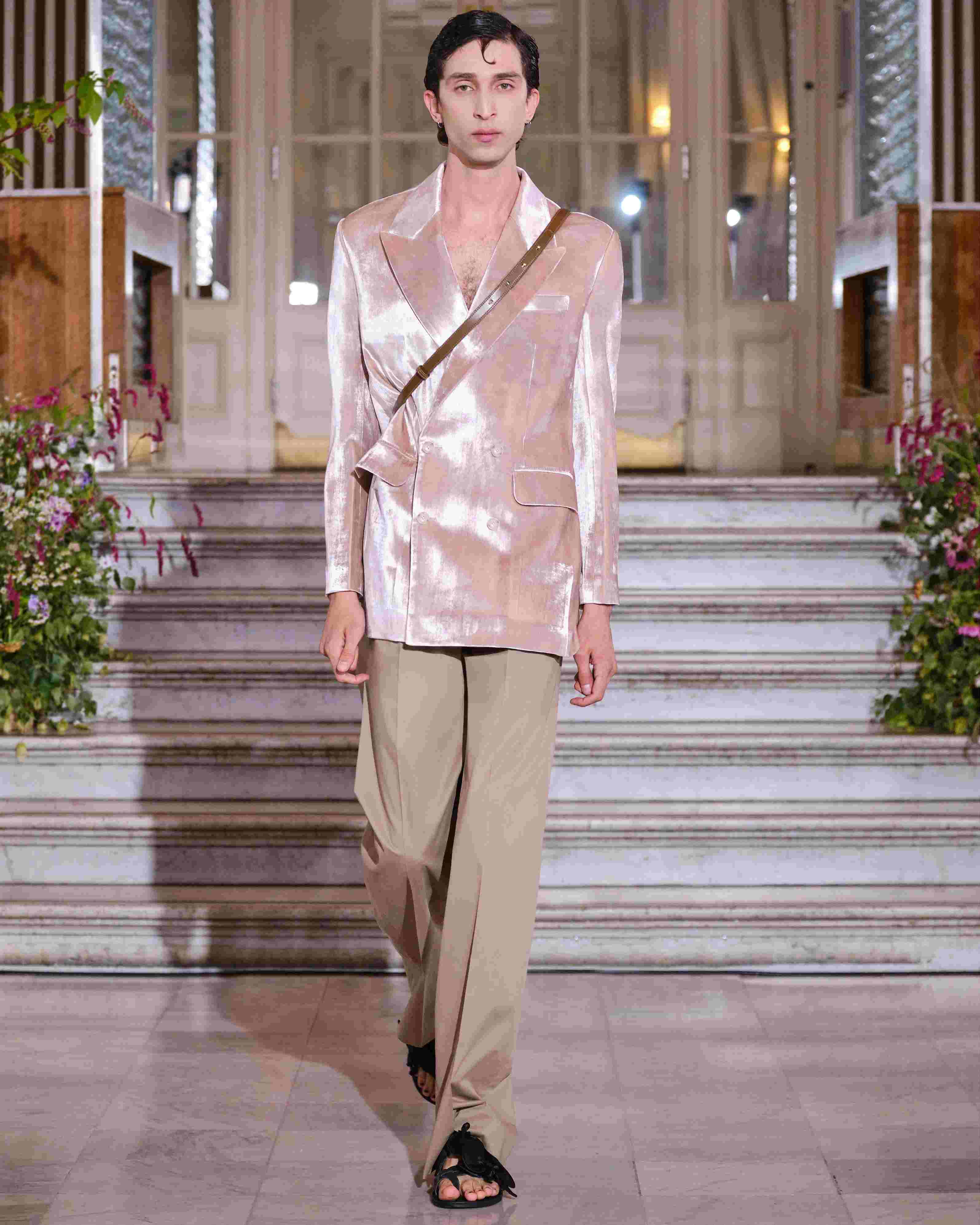 "Bộ sưu tập lần này của tôi đã được lên ý tưởng trước đó 3 tháng và hoàn thiện chỉ trước 1 ngày sang London, với 40 mẫu thiết kế nam nữ được sử dụng chất liệu chủ đạo là vải Tơ tằm thân thiện môi trường, với những tông màu tự nhiên, mang hơi hướng Xuân Hè làm chủ đạo. Bên cạnh đó, các hoạ tiết đan xen trên thiết kế lần này được lấy cảm hứng chính từ hoa lan được xử lý hoàn toàn thủ công sử dụng kỹ thuật đắp vải mảng miếng là signature của Trần Hùng. Ngoài ra xuyên suốt bộ sưu tập còn là những trang phục suit được may đo tỉ mỉ và vô cùng kỳ công, với form dáng hiện đại và cao cấp" - NTK Trần Hùng nói thêm về bộ sưu tập mùa Xuân Hè 2025.