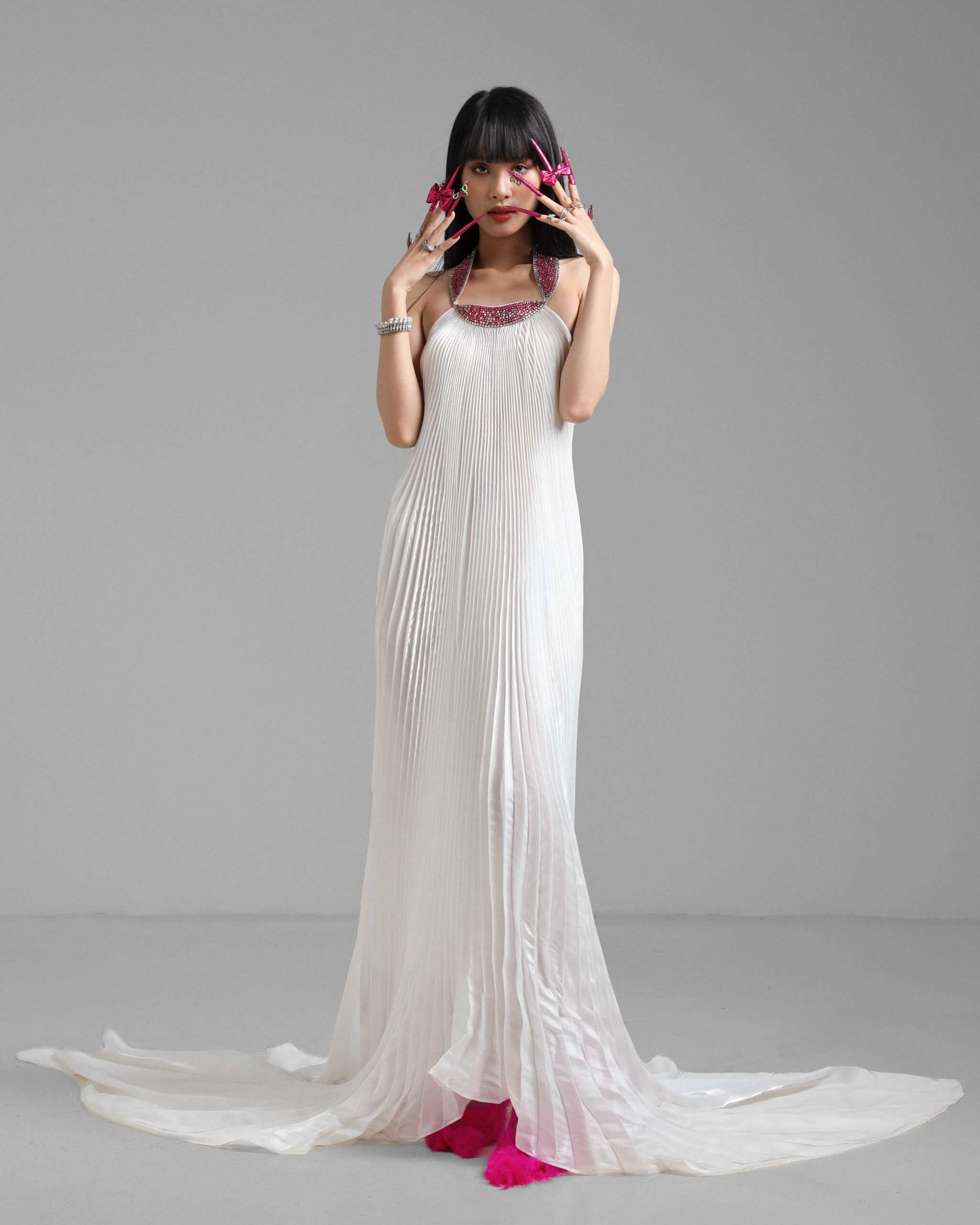 Trong quá trình thực hiện BST tốt nghiệp của mình, với những cảm hứng về miền Tây sông nước, cảnh hoàng hôn vào mùa nước nổi, hình ảnh hoa sen, hoa súng vẫn luôn đưa mình đến với những cảm xúc mãnh liệt nhất. Và mình mong muốn đưa những ký ức đó thông qua cảm nhận của một đứa con miền Tây vào các thiết kế. Những tà váy dập ly thướt tha đầy màu sắc, những chiếc hoa súng, lá sen giản dị được hiện thực hóa trở thành điểm riêng biệt độc đáo của thương hiệu mình.