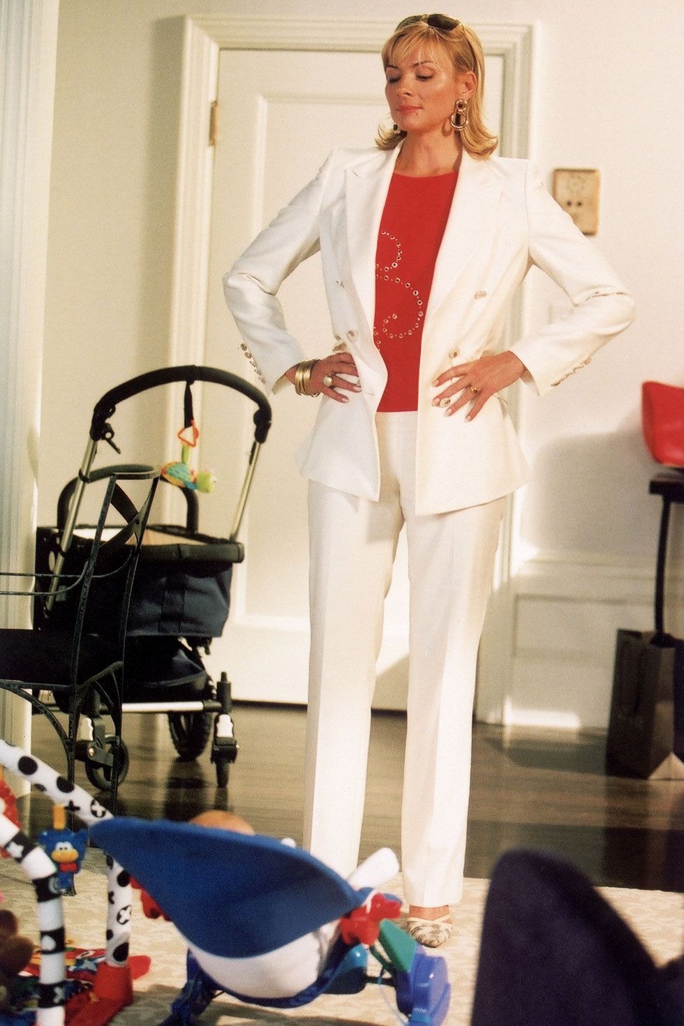 Ở những cảnh quay mà Samantha Jones vào vai một chuyên gia PR chuyên nghiệp, cô tỏa sáng trong những bộ vest cùng quần âu và vest váy thanh lịch và tinh tế. Tuy nhiên, khác với những bộ vest màu trầm tính, sở hữu kiểu dáng truyền thống biến tấu một ít quyến rũ hơn từ làn sóng office siren - xu hướng được sủng ái bậc nhất hiện nay, đa số những bộ vest trong tủ quần áo công sở của Sam trong “Sex and the City” cuốn hút đặc biệt bằng một gam màu nổi bật, kết hợp cùng kiểu dáng cổ điển và bóng bẩy.