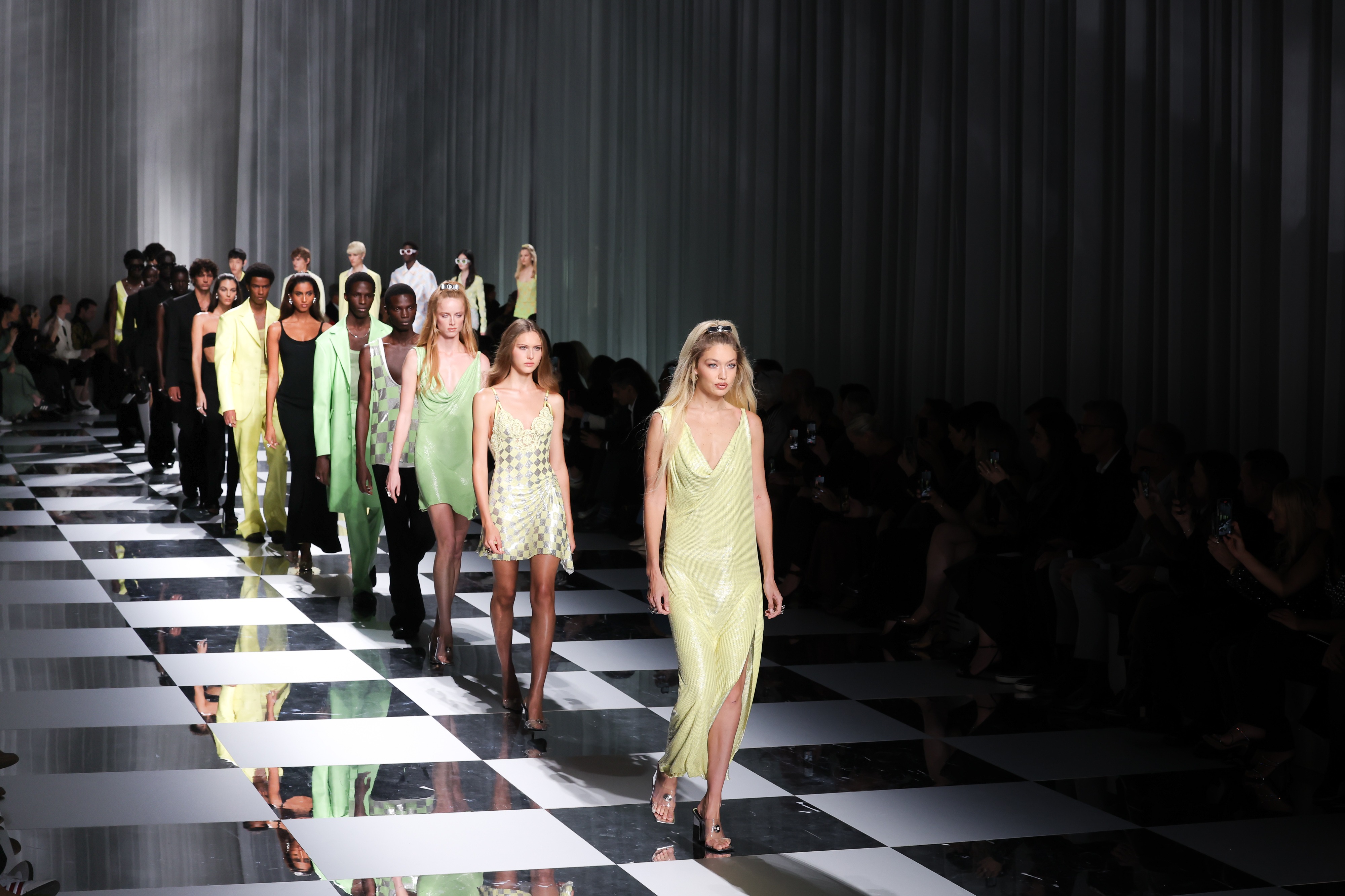 Donatella Versace luôn biết cách khiến những buổi trình diễn của mình trở nên hoành tráng, đặc biệt là nhờ vào địa điểm tổ chức mang tính biểu tượng. Bà mời những khách mời của mình đến Castello Sforzesco tuyệt đẹp - ngọn tháp cao nhất và tường thành lối cổng chính Pháo đài của tòa lâu đài đều được thắp sáng rực rỡ. Khi bước qua lối vào Castello Sforzesco lúc chạng vạng, du khách phần nào cảm nhận được sự trang nghiêm của địa điểm tổ chức. Một số người đi chậm lại, một số người thẳng vai và một số người ngẩng cao cằm hơn một chút; tất cả đều như thể hiện sự cao quý của thời trang. Bóng tối buông xuống, sàn catwalk chéo nhau được đặt ở giữa sáng lên, khách mời an vị, giai điệu opera kinh điển cao vút chuyển sang nhạc điện tử, thế là một show diễn ngoạn mục được bắt đầu.